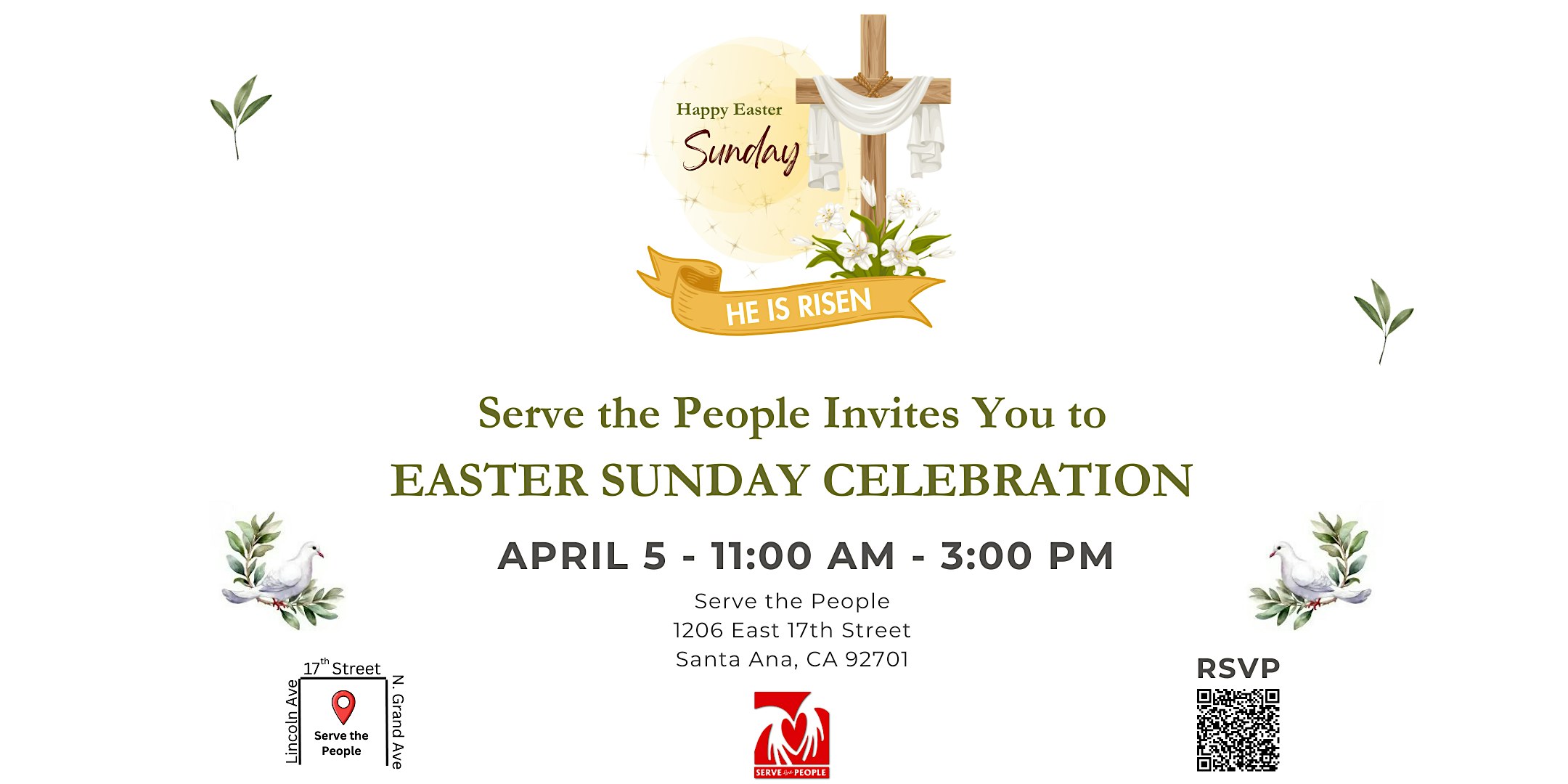 by admin27Feb Serve the People: Easter Day Celebration at Serve the People Community Health Center – Santa Ana – Santa Ana, CA Serve the People: Easter Day Celebration at Serve the People Community Health Center – Santa Ana – Santa Ana, CA 2 2 people viewed this event. Serve the People is pleased to host a free Easter Day Celebration. Enjoy a warm meal, uplifting company, and a welcoming atmosphere. Tickets-RSVP Link Date And Time Sunday, April 5th, 2026 @ 11:00 AM Location 1206 E 17th Street, Santa Ana, CA 92701 Event Types Community & CultureParty or Social Gathering Event Category CaliforniaIrvine Share With Friends Facebook Twitter Linkedin Xing Pinterest Share This Post: