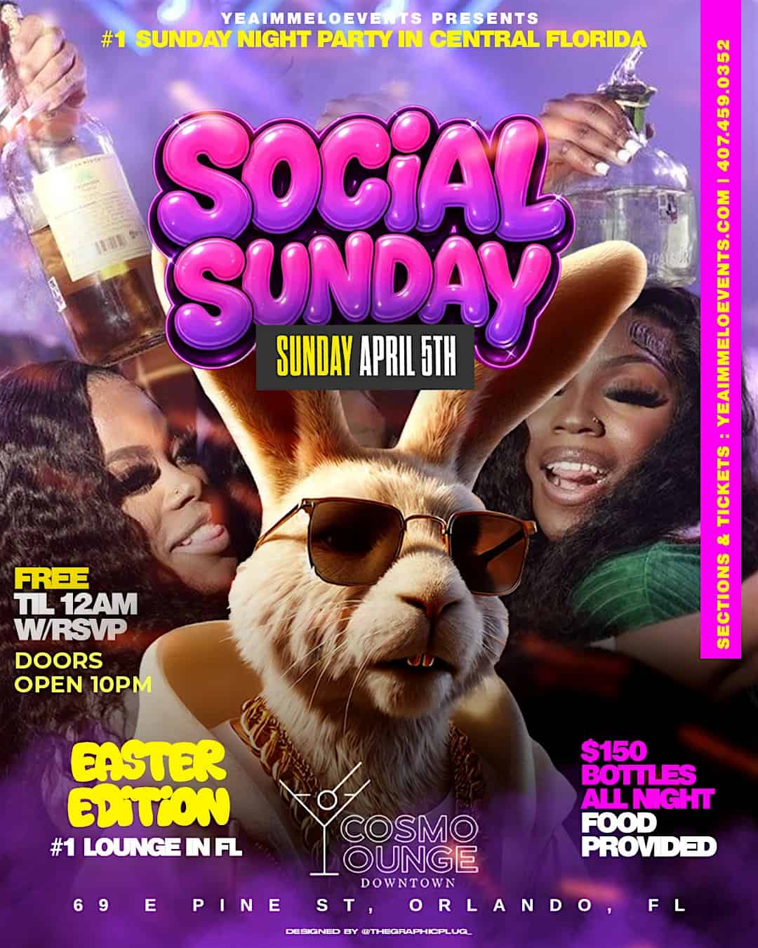 by admin23Feb SOCIAL SUNDAYs – Easter Edition at Cosmo Downtown – Orlando, FL SOCIAL SUNDAYs – Easter Edition at Cosmo Downtown – Orlando, FL 2 2 people viewed this event. Get ready to hop into Easter vibes with a special edition of SOCIAL SUNDAYs, where good times and great company await! Tickets-RSVP Link Date And Time Sunday, April 5th, 2026 10:00 PM (PST) Venue Cosmo Downtown Location 69 East Pine Street, Orlando, FL 32801 Event Types Party or Social GatheringSeasonal & Holiday Event Category FloridaOrlando Share With Friends Facebook Twitter Linkedin Xing Pinterest Share This Post: