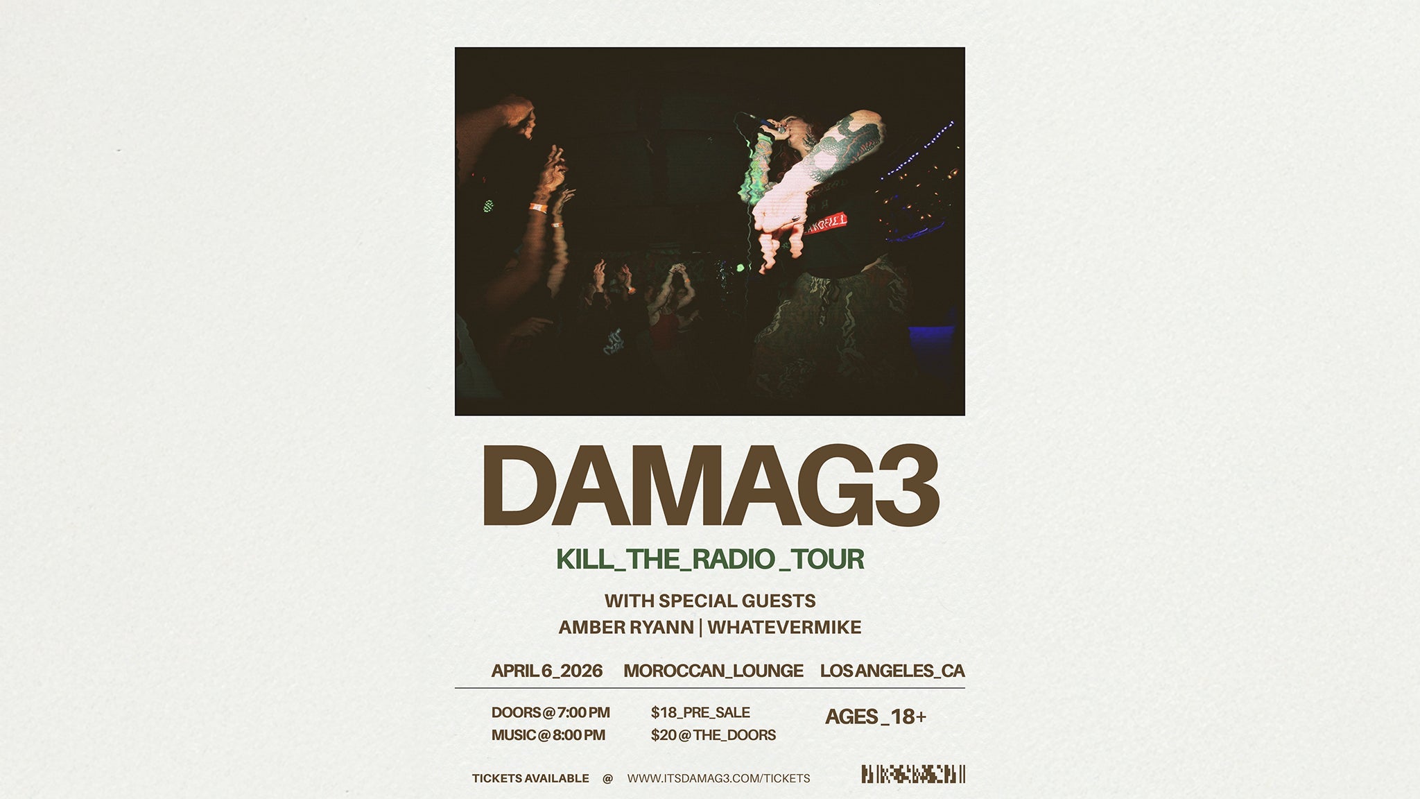 See DAMAG3 with whatever mike & Amber Ryann Live in Los Angeles on Monday, April 6, 2026, Doors Open at 6:30 PM