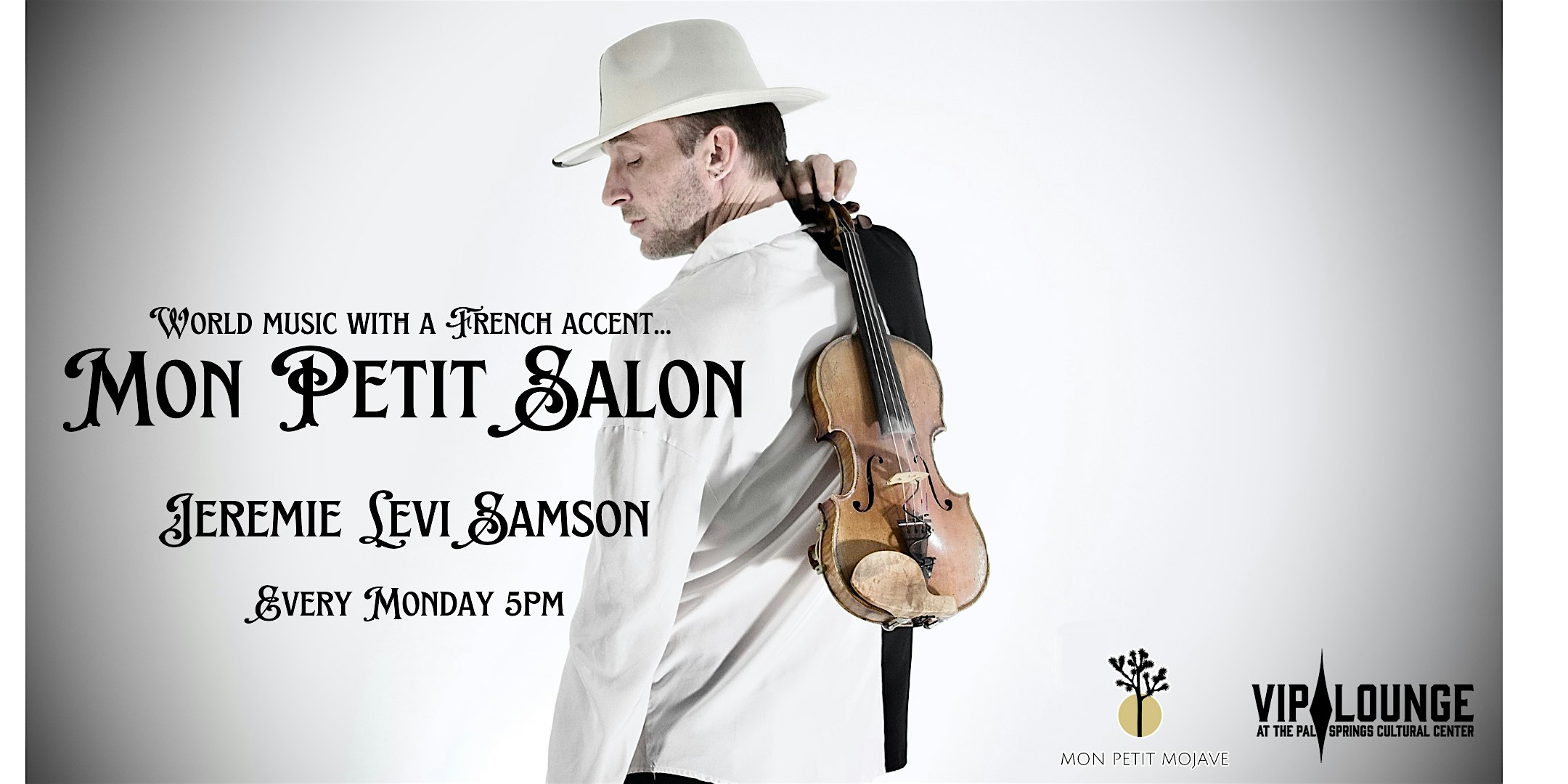 by admin24Feb MON PETIT SALON at VIP LOUNGE at the Palm Springs Cultural Center – Palm Springs, CA MON PETIT SALON at VIP LOUNGE at the Palm Springs Cultural Center – Palm Springs, CA 4 4 people viewed this event. Come on up and enjoy an evening of live music from the award-winning team from the high desert: Mon Petit Mojave Tickets-RSVP Link Date And Time Monday, April 6th, 2026 05:00 PM (PST) Venue VIP LOUNGE at the Palm Springs Cultural Center Location 2300 E. Baristo Rd, Palm Springs, CA 92262 Event Types Concert or PerformanceMusic Event Category California Share With Friends Facebook Twitter Linkedin Xing Pinterest Share This Post: