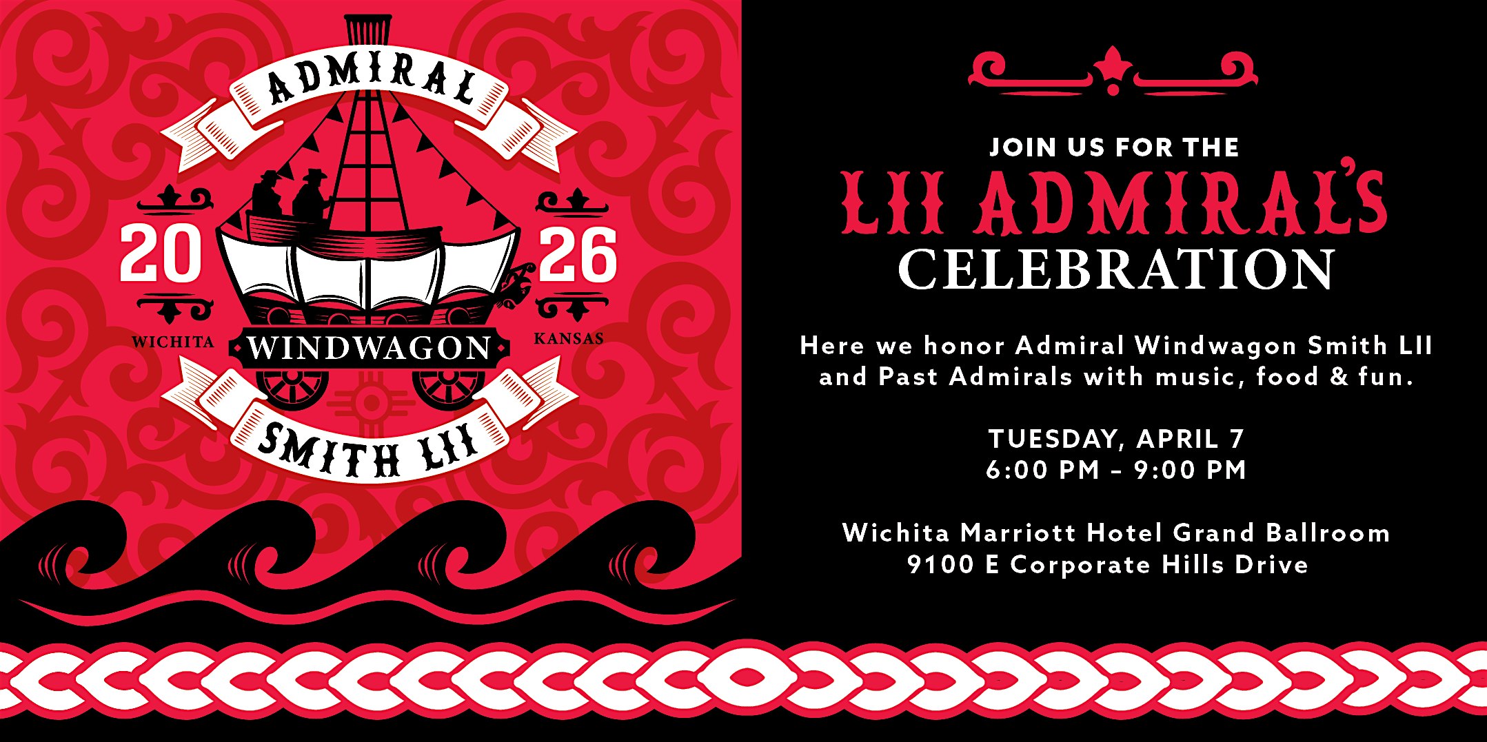 by admin13Feb 52nd Admiral’s Celebration at 9100 E Corporate Hills Dr – Wichita, KS 52nd Admiral’s Celebration at 9100 E Corporate Hills Dr – Wichita, KS 2 2 people viewed this event. Join us for The Admiral’s Celebration here we honor Admiral Windwagon Smith LII Tickets-RSVP Link Date And Time Tuesday, April 7th, 2026 11:00 PM (PST) Venue 9100 E Corporate Hills Dr Location 9100 East Corporate Hills Drive, Wichita, KS 67207 Event Types Community & CultureParty or Social Gathering Event Category KansasWichita Share With Friends Facebook Twitter Linkedin Xing Pinterest Share This Post: