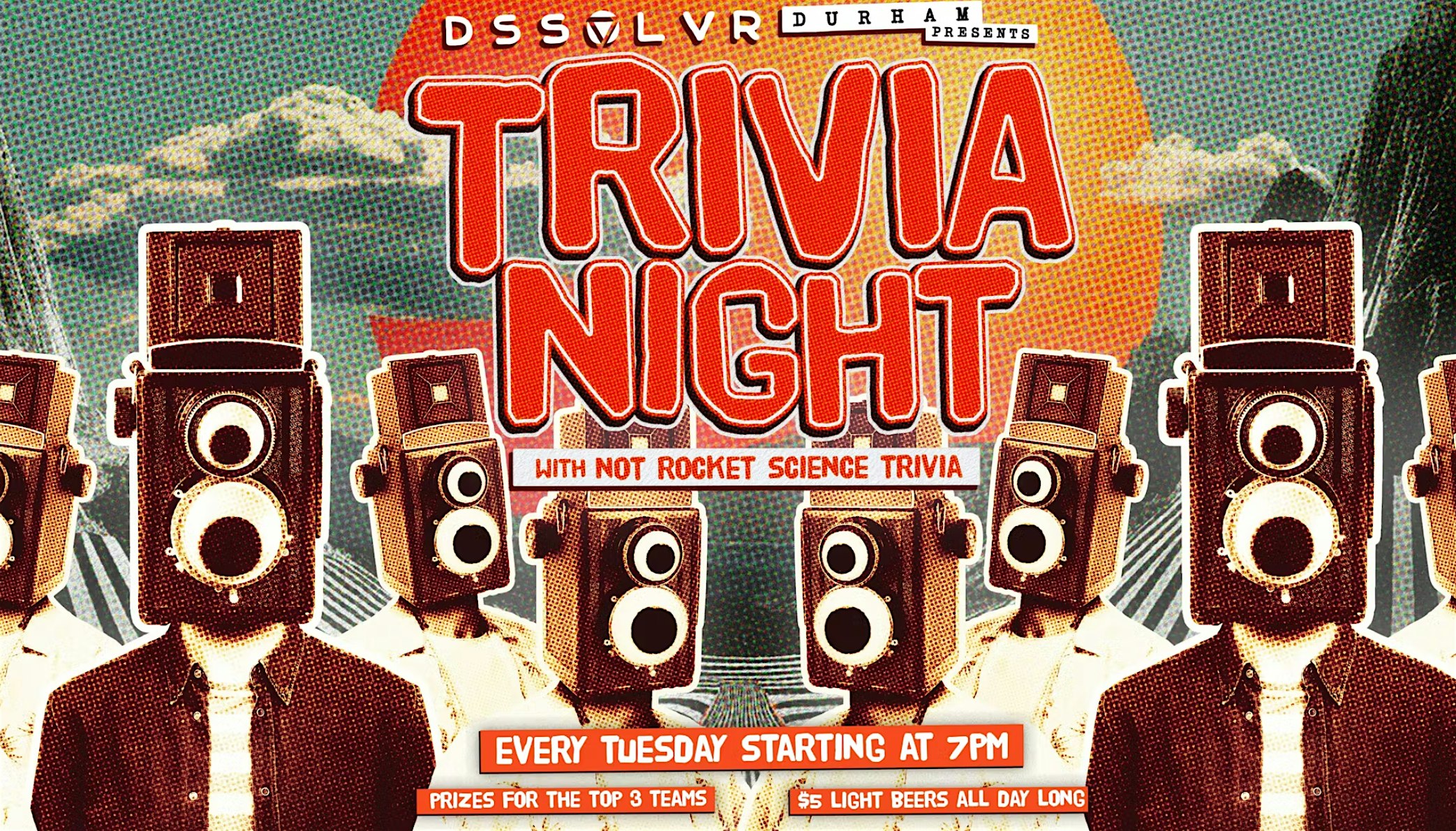 Not Rocket Science Trivia Night at DSSOLVR Durham – Durham, NC Not Rocket Science Trivia Night at DSSOLVR Durham – Durham, NC 1 1 people viewed this event. Every Tuesday at DSSOLVR, starting @ 7 pm. Free to play, no team limits, prizes for top 3 teams. $6 IPAs & $1 Jell-o Shots. Dog friendly! Tickets-RSVP Link Register for event Date And Time Tuesday, April 7th, 2026 @ 07:00 PM Location 630 Rigsbee Avenue, Durham, NCĀ 27701 Event Types Food & DrinkGame or Competition Event Category DurhamNorth Carolina Share With Friends Facebook Twitter Linkedin Xing Pinterest