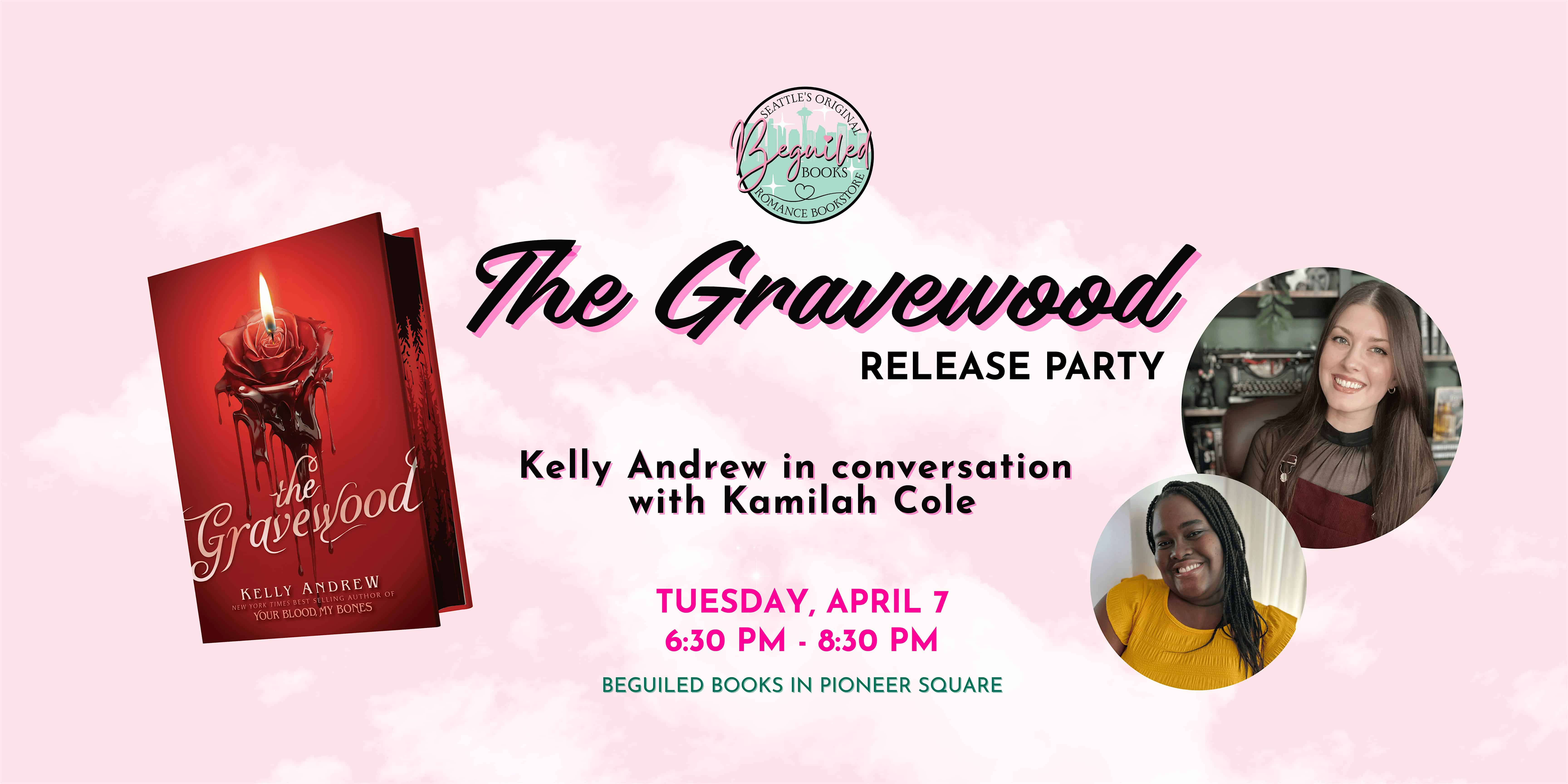 by admin23Feb THE GRAVEWOOD by Kelly Andrew Release Party at Beguiled Books – Seattle, WA THE GRAVEWOOD by Kelly Andrew Release Party at Beguiled Books – Seattle, WA 2 2 people viewed this event. Join Beguiled Books and Scholastic, Inc. as we celebrate the release of Kelly Andrew’s newest book, THE GRAVEWOOD. Tickets-RSVP Link Date And Time Tuesday, April 7th, 2026 06:00 PM (PST) Venue Beguiled Books Location 109 1st Avenue South, Seattle, WA 98104 Event Types Party or Social GatheringPerforming & Visual Arts Event Category SeattleWashington Share With Friends Facebook Twitter Linkedin Xing Pinterest Share This Post: