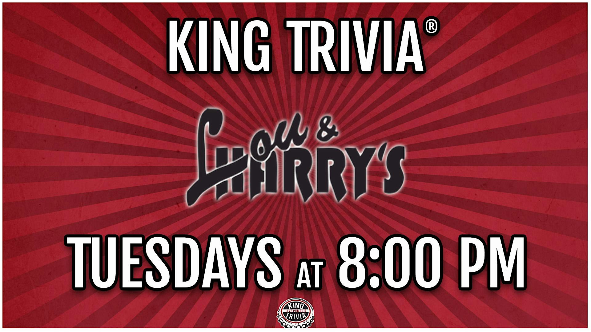 Trivia Night at Lou & Harry’s at Lou & Harry’s Bar and Grill – East Lansing, MI Trivia Night at Lou & Harry’s at Lou & Harry’s Bar and Grill – East Lansing, MI 2 2 people viewed this event. Your Weekly Bar Trivia Challenge! Drink a beer, munch some food, and compete for glory & prizes! FREE to play! Tickets-RSVP Link Register for event Date And Time Tuesday, April 7th, 2026 @ 08:00 PM Location 211 East Grand River Avenue, East Lansing, MI 48823 Event Types Food & DrinkGame or Competition Event Category Michigan Share With Friends Facebook Twitter Linkedin Xing Pinterest
