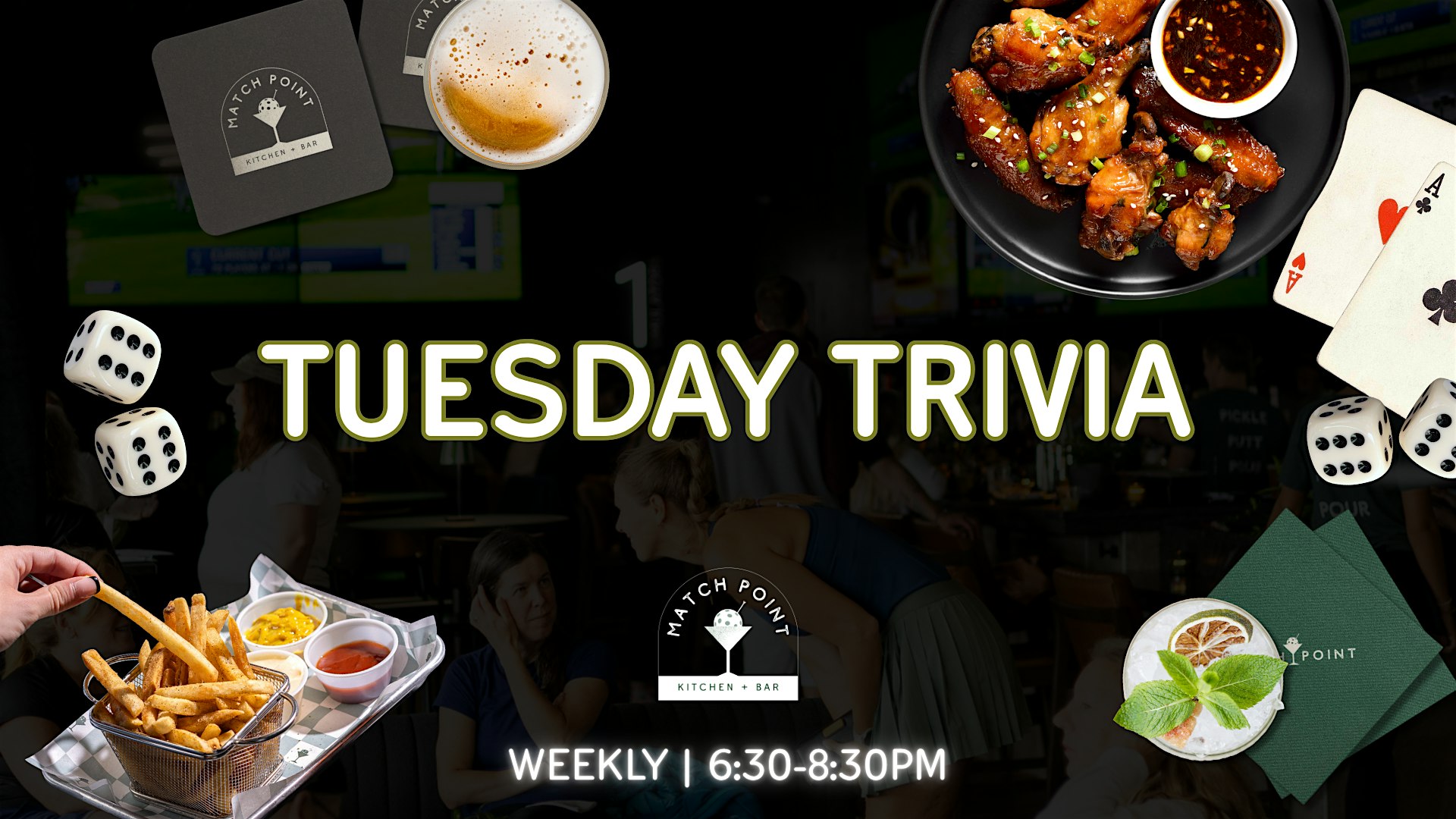 Tuesday Night Trivia at Bounce at Bounce Pickle Biddeford – Biddeford, ME Tuesday Night Trivia at Bounce at Bounce Pickle Biddeford – Biddeford, ME 2 2 people viewed this event. Trivia Tuesdays at Bounce + Match Point Kitchen Gather your crew and join us every Tuesday night from 6:30–8PM! Tickets-RSVP Link Register for event Date And Time Tuesday, April 7th, 2026 @ 06:00 PM Location 420 Alfred Street, Biddeford, ME 4005 Event Types Food & DrinkGame or Competition Event Category Maine Share With Friends Facebook Twitter Linkedin Xing Pinterest