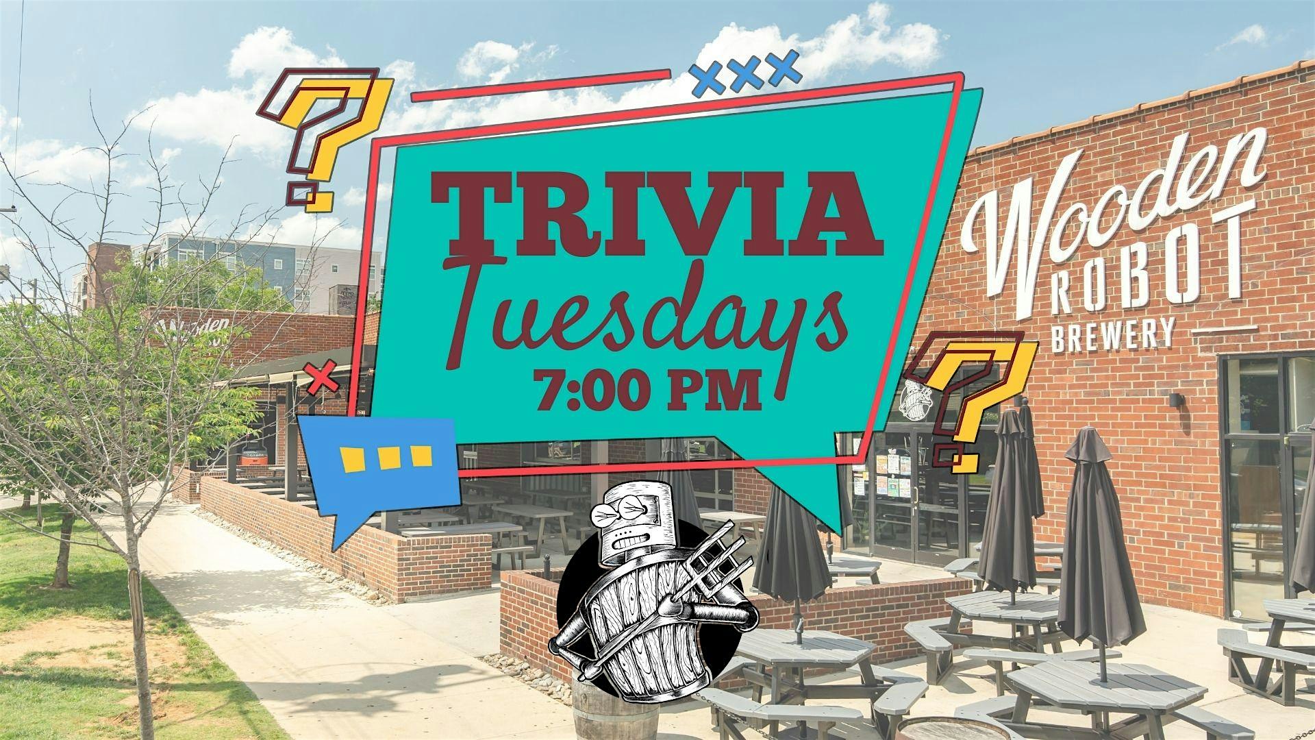 Tuesday Trivia – Wooden Robot Brewery – South End at Wooden Robot Brewery – Charlotte, NC Tuesday Trivia – Wooden Robot Brewery – South End at Wooden Robot Brewery – Charlotte, NC 1 1 people viewed this event. Test your trivia skills every Tuesday night at Wooden Robot Brewery in South End! Tickets-RSVP Link Register for event Date And Time Tuesday, April 7th, 2026 @ 07:00 PM Location 1440 South Tryon Street, Charlotte, NC 28203 Event Types Food & DrinkGame or Competition Event Category CharlotteNorth Carolina Share With Friends Facebook Twitter Linkedin Xing Pinterest