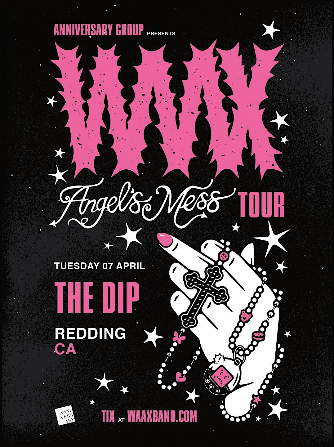by admin24Feb WAAX at The Dip – Redding, CA WAAX at The Dip – Redding, CA 2 2 people viewed this event. 8PM | $10 ADV | $15 DAY OF | 21+ Tickets-RSVP Link Date And Time Tuesday, April 7th, 2026 08:00 PM (PST) Venue The Dip Location 1730 California Street, Redding, CA 96001 Event Types Concert or PerformanceMusic Event Category California Share With Friends Facebook Twitter Linkedin Xing Pinterest Share This Post:
