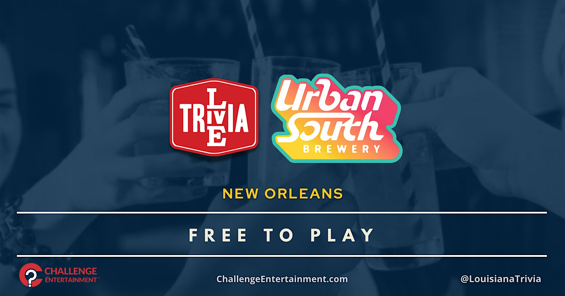 Weekly Live Trivia Nights at Urban South Brewery – New Orleans at Urban South Brewery – New Orleans, LA Weekly Live Trivia Nights at Urban South Brewery – New Orleans at Urban South Brewery – New Orleans, LA 1 1 people viewed this event. Live Trivia at Urban South Brewery Tues at 6:30pm Tickets-RSVP Link Register for event Date And Time Tuesday, April 7th, 2026 @ 06:00 PM Location 1645 Tchoupitoulas Street, New Orleans, LA 70130 Event Types Food & DrinkGame or Competition Event Category LouisianaNew Orleans Share With Friends Facebook Twitter Linkedin Xing Pinterest