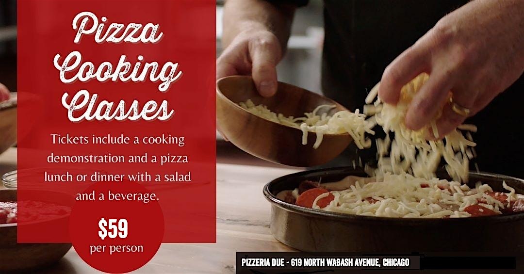 Deep Dish Pizza Classes with Pizzeria UNO at Pizzeria Due – Chicago, IL Deep Dish Pizza Classes with Pizzeria UNO at Pizzeria Due – Chicago, IL 3 3 people viewed this event. Learn how to make the iconic deep dish pizza at Pizzeria UNO’s fun and interactive pizza classes! Tickets-RSVP Link Register for event Date And Time Wednesday, April 8th, 2026 @ 06:00 PM Location 619 North Wabash Avenue, Chicago, IL 60611 Event Types Class, Training, or WorkshopFood & Drink Event Category ChicagoIllinois Share With Friends Facebook Twitter Linkedin Xing Pinterest