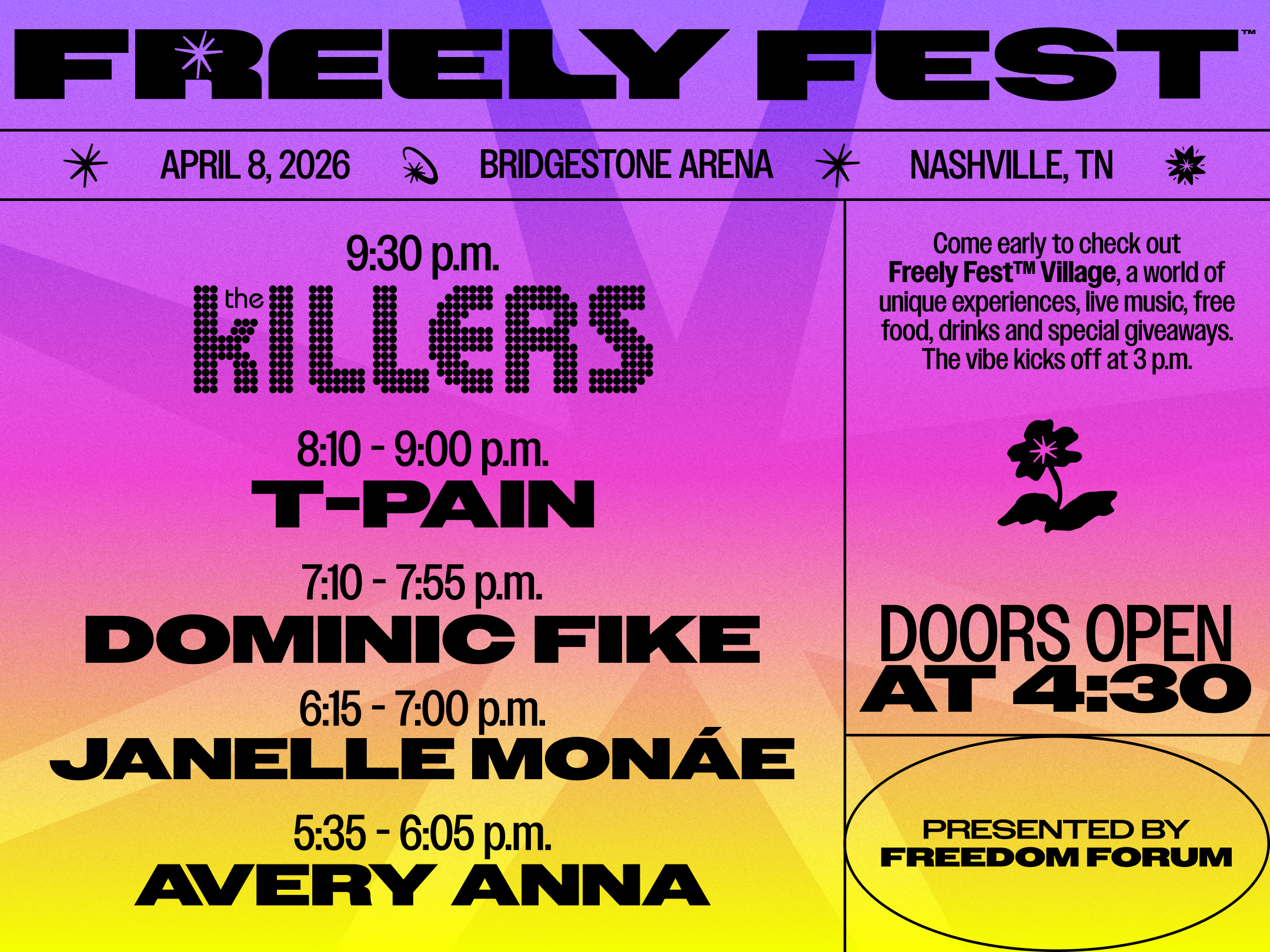 See Freely Fest with the Killers, T-Pain, Dominic Fike, and more Live in Nashville on Wednesday, April 8, 2026, Doors Open at 5:30 PM