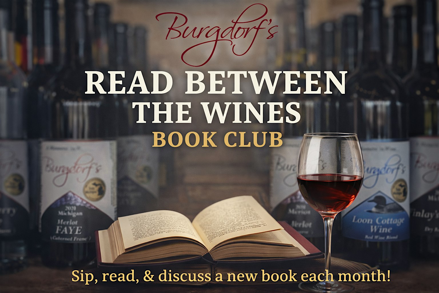 Read Between the Wines Book Club at Burgdorf’s Winery – Webberville, MI Read Between the Wines Book Club at Burgdorf’s Winery – Webberville, MI 1 1 people viewed this event. Grab some wine, your book, and a chair in our Tasting Room – it’s our Read Between the Wines book club! Tickets-RSVP Link Register for event Date And Time Wednesday, April 8th, 2026 @ 05:00 PM Location 4212 Holt Road, Webberville, MI 48892 Event Types Food & DrinkMeeting or Networking Event Event Category Michigan Share With Friends Facebook Twitter Linkedin Xing Pinterest