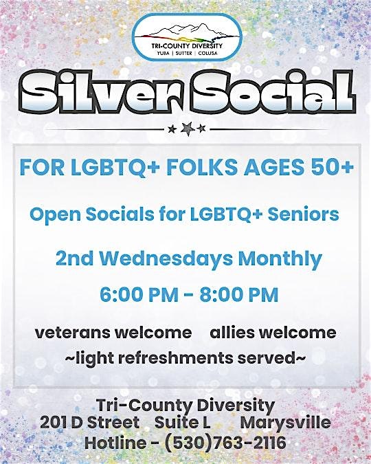 by admin27Feb Silver Social at Tri-County Diversity – Marysville, CA Silver Social at Tri-County Diversity – Marysville, CA 2 2 people viewed this event. Support Social for LGBTQ+ Seniors Tickets-RSVP Link Date And Time Wednesday, April 8th, 2026 @ 06:00 PM Location 201 D Street, Marysville, CA 95901 Event Types Community & CultureParty or Social Gathering Event Category California Share With Friends Facebook Twitter Linkedin Xing Pinterest Share This Post: