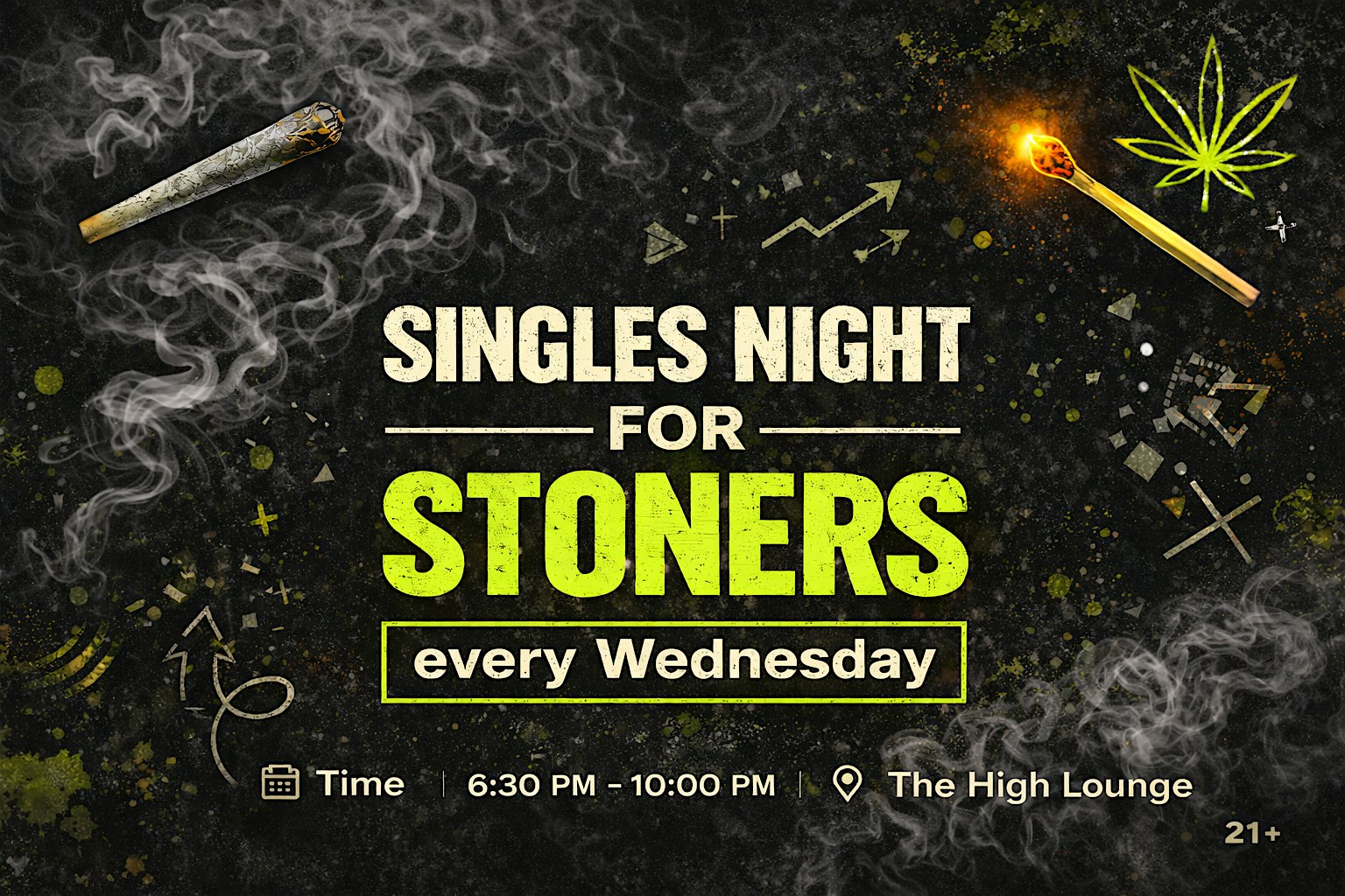 This is a weekly social club created for cannabis-friendly singles who want to meet people naturally, laugh, vibe, and actually enjoy the night. No pressure. No timers. No weird energy. Just real people, good vibes, and a relaxed lounge environment.