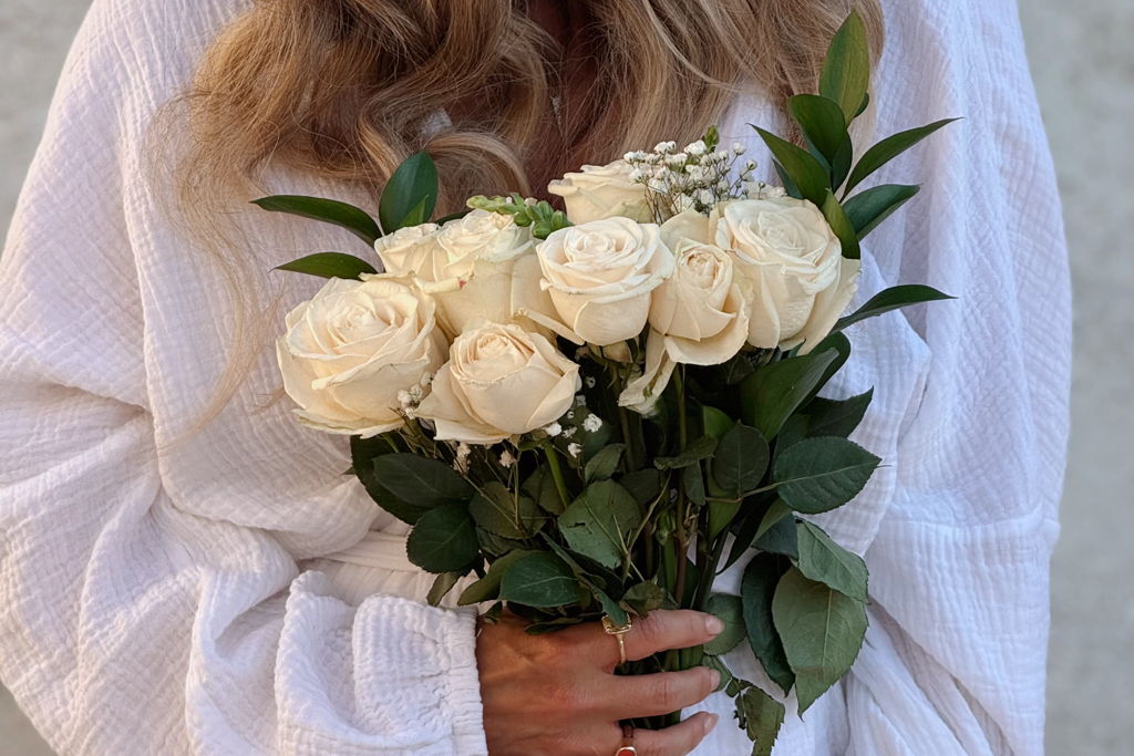 12 fresh roses (no thorns or greens)
