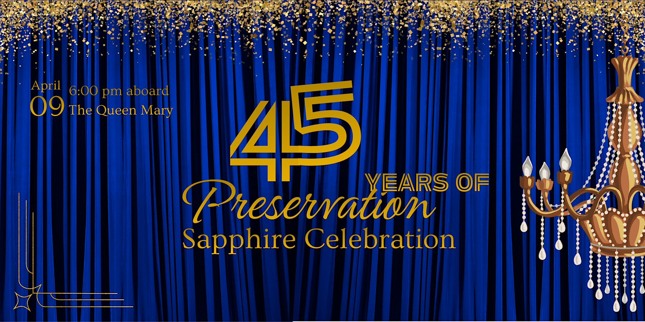 by admin24Feb Annual Preservation Awards Celebrating 45 Years of Preservation at The Queen Mary – Long Beach, CA Annual Preservation Awards Celebrating 45 Years of Preservation at The Queen Mary – Long Beach, CA 2 2 people viewed this event. Celebrate 45 years of preservation at Long Beach Heritage’s Sapphire Celebration Gala—an unforgettable evening aboard the iconic Queen Mary. Tickets-RSVP Link Date And Time Thursday, April 9th, 2026 06:00 PM (PST) Venue The Queen Mary Location 1126 Queens Highway, Long Beach, CA 90802 Event Types Community & CultureParty or Social Gathering Event Category CaliforniaLong Beach Share With Friends Facebook Twitter Linkedin Xing Pinterest Share This Post: