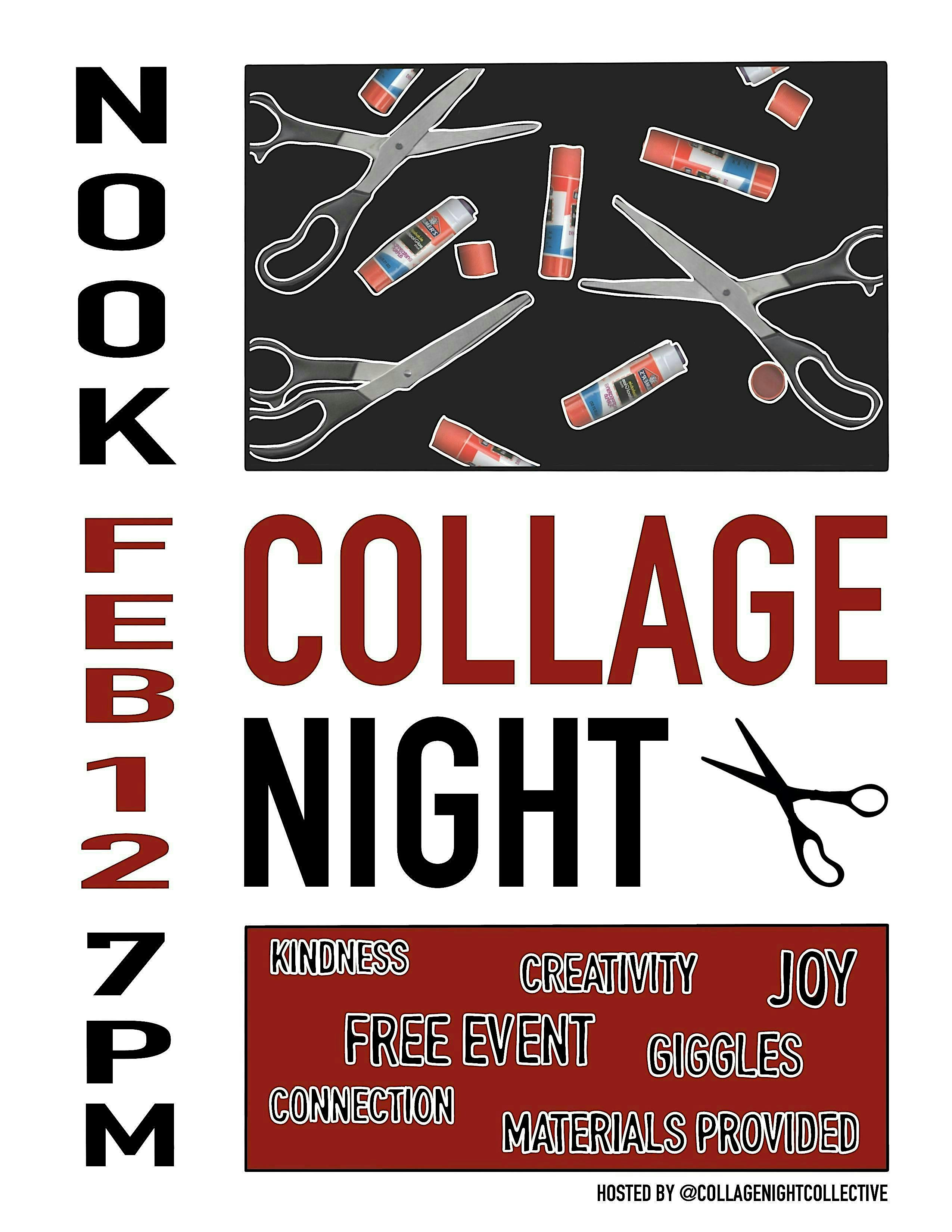 by admin24Feb Collage Night at Nook – Brooklyn, NY Collage Night at Nook – Brooklyn, NY 2 2 people viewed this event. Collage night is free event hosted by the @collagenightcollective Tickets-RSVP Link Date And Time Thursday, April 9th, 2026 @ 07:00 PM Location 45 Irving Avenue, Brooklyn, NY 11237 Event Types Party or Social GatheringPerforming & Visual Arts Event Category New York Share With Friends Facebook Twitter Linkedin Xing Pinterest Share This Post: