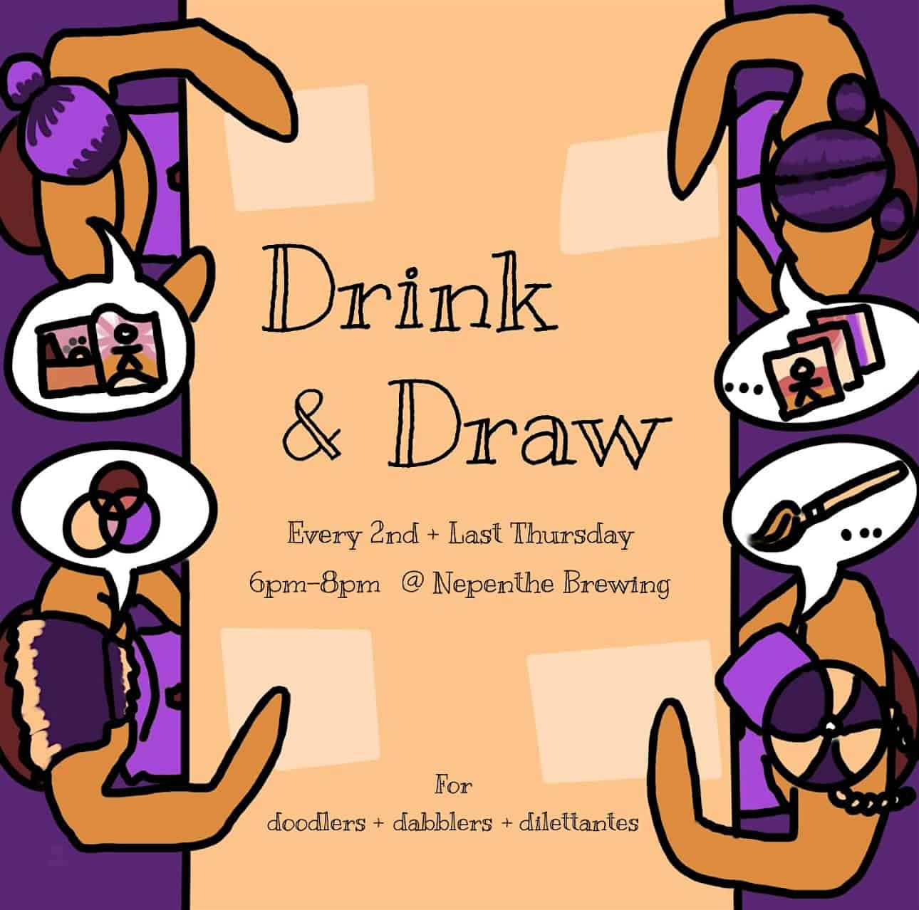 by admin14Feb Drink & Draw at Nepenthe Brewing Co. – Baltimore, MD Drink & Draw at Nepenthe Brewing Co. – Baltimore, MD 1 1 people viewed this event. A doodling social club for artists of all skill levels Tickets-RSVP Link Date And Time Thursday, April 9th, 2026 10:00 PM (PST) Venue Nepenthe Brewing Co. Location 3626 Falls Road, Baltimore, MD 21211 Event Types Party or Social GatheringPerforming & Visual Arts Event Category BaltimoreMaryland Share With Friends Facebook Twitter Linkedin Xing Pinterest Share This Post: