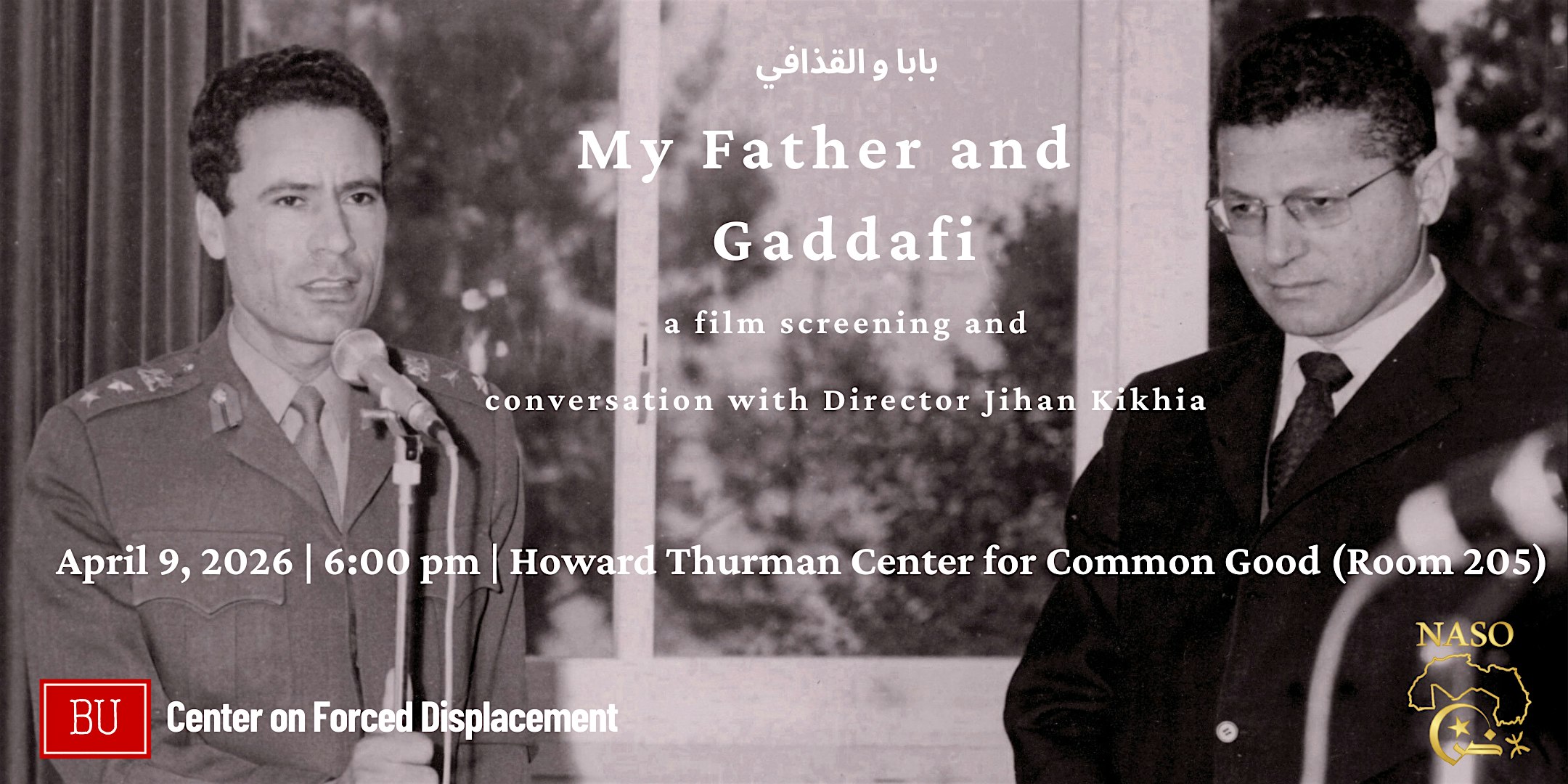 Join the Center on Forced Displacement and the North African Students Organization for a screening of My Father and Qaddafi, followed by a discussion with director Jihan Kikhia.