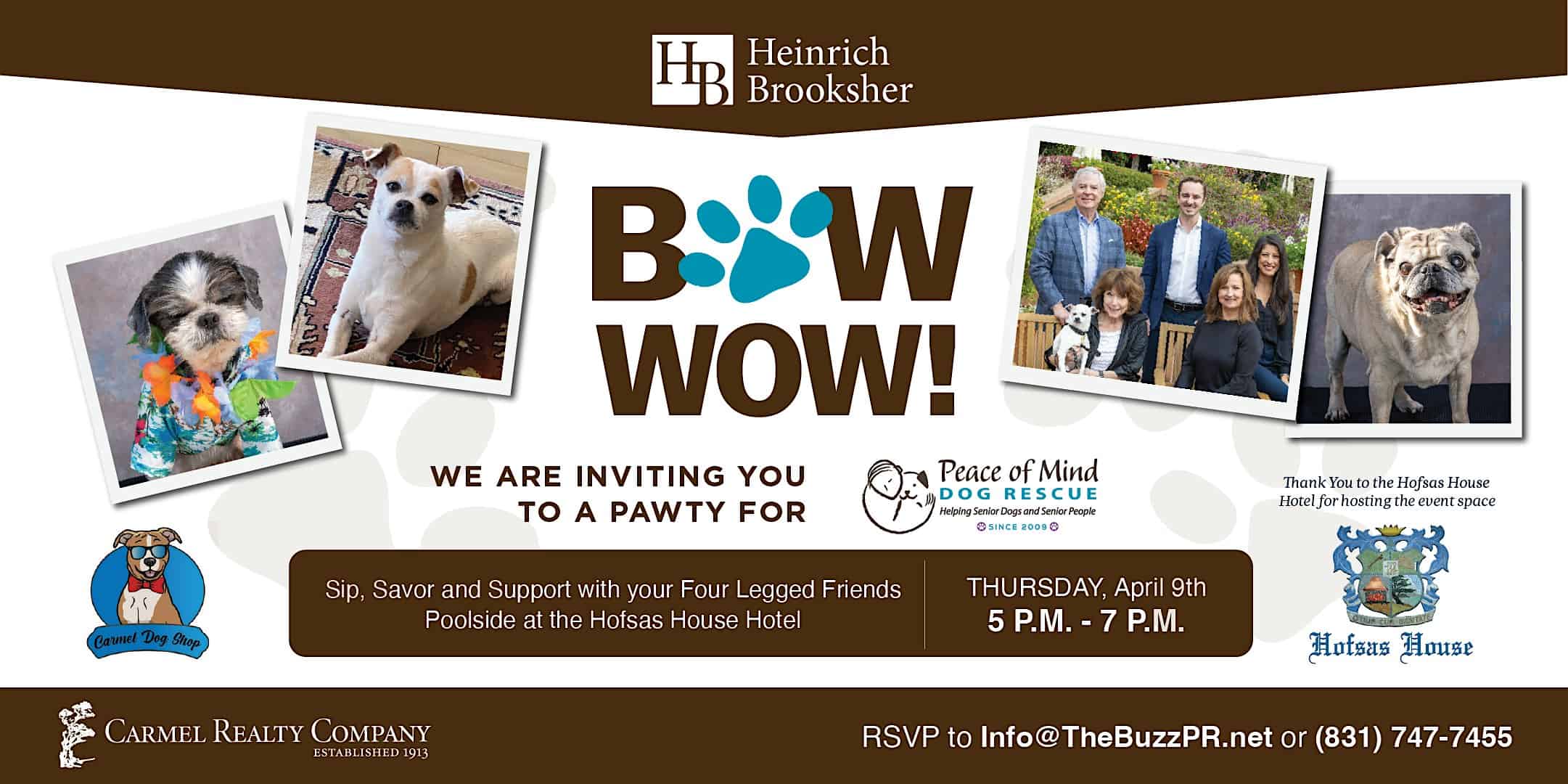 by admin23Feb PAWTY for Peace of Mind Dog Rescue at Hofsas House Hotel – Carmel-by-the-Sea, CA PAWTY for Peace of Mind Dog Rescue at Hofsas House Hotel – Carmel-by-the-Sea, CA 2 2 people viewed this event. We are inviting you to a PAWTY for Peace of Mind Dog Rescue Tickets-RSVP Link Date And Time Thursday, April 9th, 2026 05:00 PM (PST) Venue Hofsas House Hotel Location San Carlos Street, Carmel-by-the-Sea, CA 93921 Event Types Charity & CausesParty or Social Gathering Event Category California Share With Friends Facebook Twitter Linkedin Xing Pinterest Share This Post: