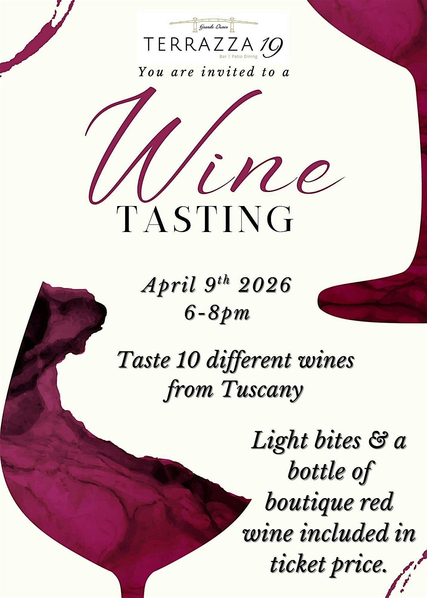 Tuscany Wine Tasting at Terrazza 19, 8700 Golf Village Lane, Myrtle Beach, SC, USA – Myrtle Beach, SC