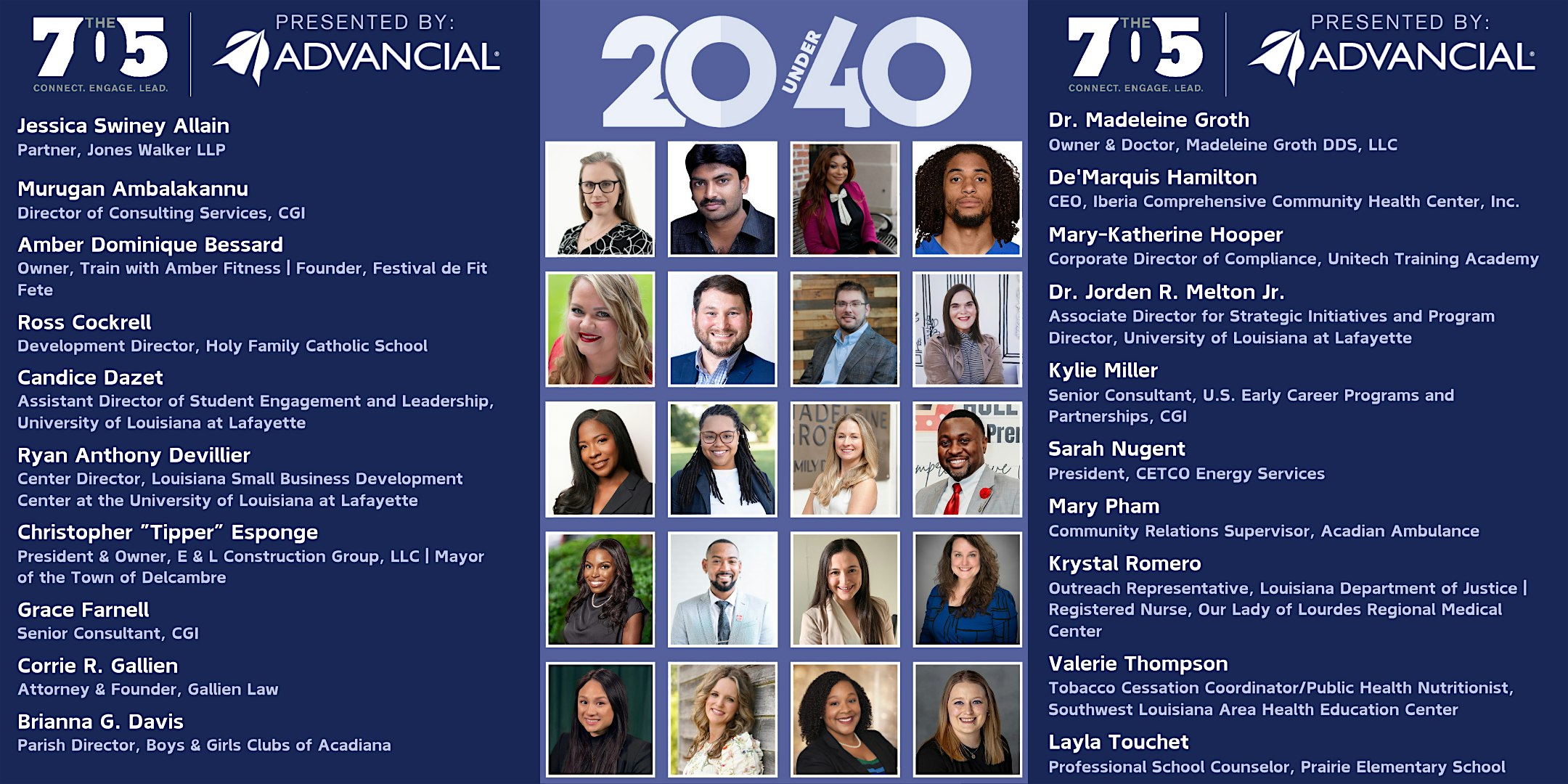 by admin23Feb 17th Annual Top 20 Under 40 Acadiana Leadership Awards at Student Union – Lafayette, LA 17th Annual Top 20 Under 40 Acadiana Leadership Awards at Student Union – Lafayette, LA 2 2 people viewed this event. Join the705 in honoring this year’s best and brightest young professionals in Acadiana. Ticket sales will end on April 3, 2026. Tickets-RSVP Link Date And Time Friday, April 10th, 2026 06:00 PM (PST) Venue Student Union Location 620 McKinley Street, Lafayette, LA 70503 Event Types Party or Social Gathering Event Category Louisiana Share With Friends Facebook Twitter Linkedin Xing Pinterest Share This Post: