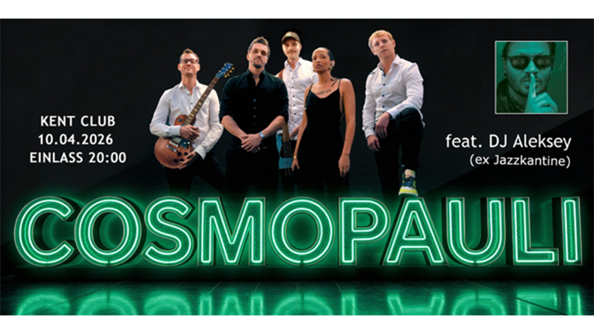 Nach dem Konzert übernimmt DJ Aleksey (ehem. Jazzkantine) die Regler und führt den Abend musikalisch weiter – abwechslungsreich, clubtauglich und passend zum Cosmopauli-Vibe.