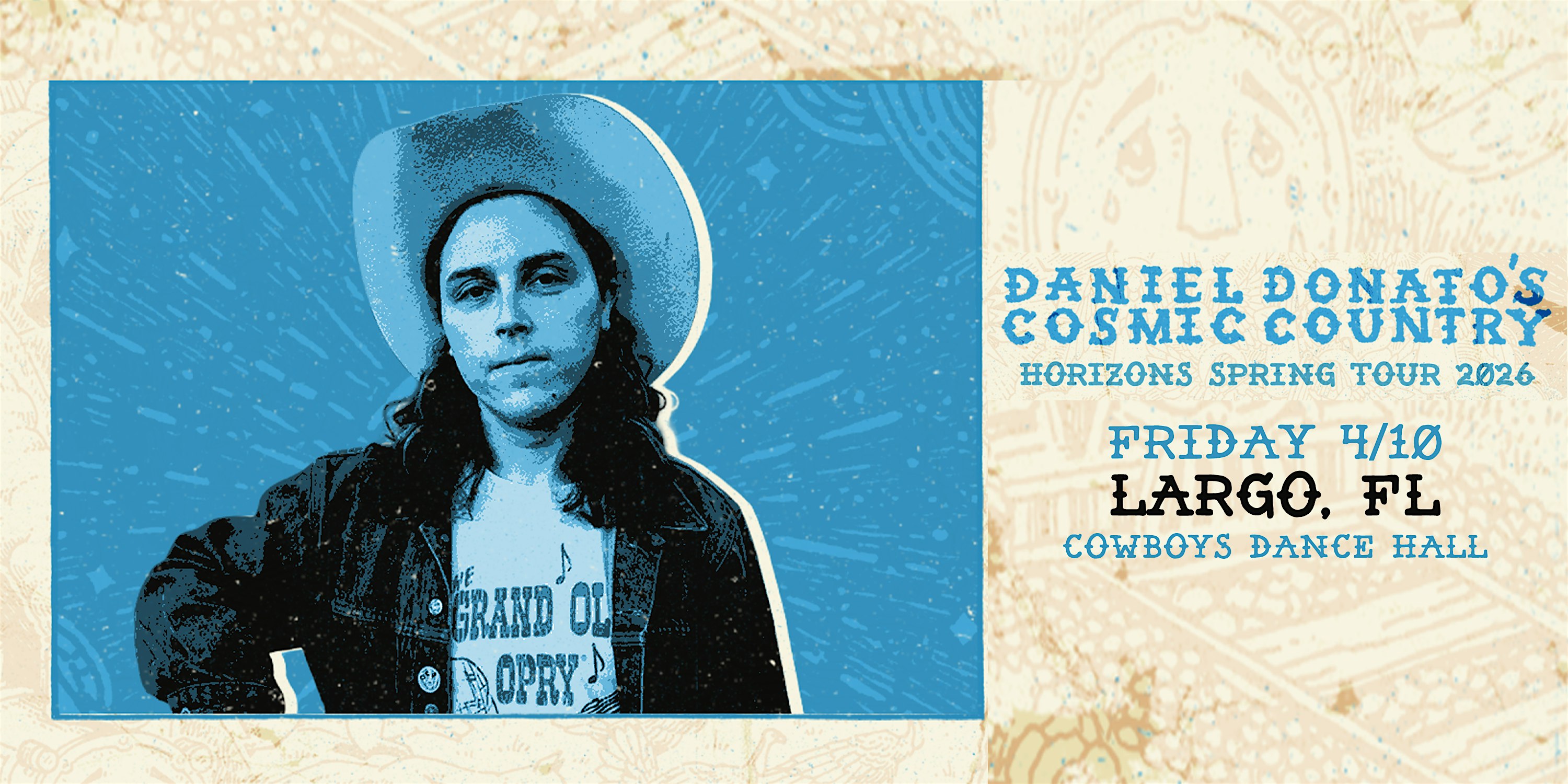 by admin24Feb DANIEL DONATO’S COSMIC COUNTRY – LARGO at Cowboys Dance Hall – Largo, FL DANIEL DONATO’S COSMIC COUNTRY – LARGO at Cowboys Dance Hall – Largo, FL 3 3 people viewed this event. DANIEL DONATO’S COSMIC COUNTRY live in LARGO Tickets-RSVP Link Date And Time Friday, April 10th, 2026 07:00 PM (PST) Venue Cowboys Dance Hall Location 12333 66th Street North, Largo, FL 33773 Event Types Concert or PerformanceMusic Event Category ClearwaterFlorida Share With Friends Facebook Twitter Linkedin Xing Pinterest Share This Post: