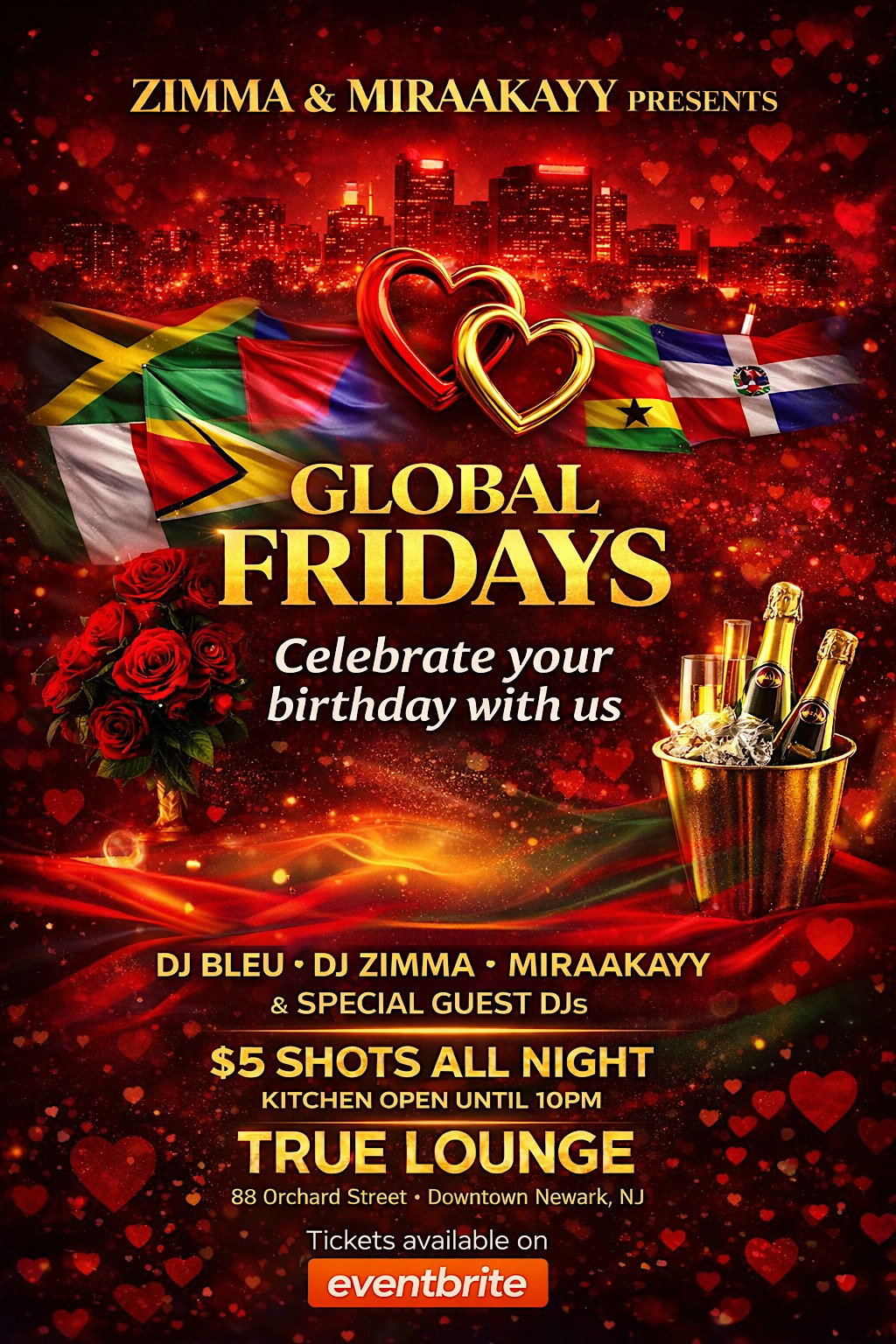 by admin23Feb Global Friday’s at True Lounge – Newark, NJ Global Friday’s at True Lounge – Newark, NJ 2 2 people viewed this event. Global Fridays blends music, dance, and ambiance to create a safe, exciting space for good vibes, great drinks, and unforgettable nights. Tickets-RSVP Link Date And Time Friday, April 10th, 2026 06:00 PM (PST) Venue True Lounge Location 88 Orchard Street, Newark, NJ 7102 Event Types MusicParty or Social Gathering Event Category New Jersey Share With Friends Facebook Twitter Linkedin Xing Pinterest Share This Post: