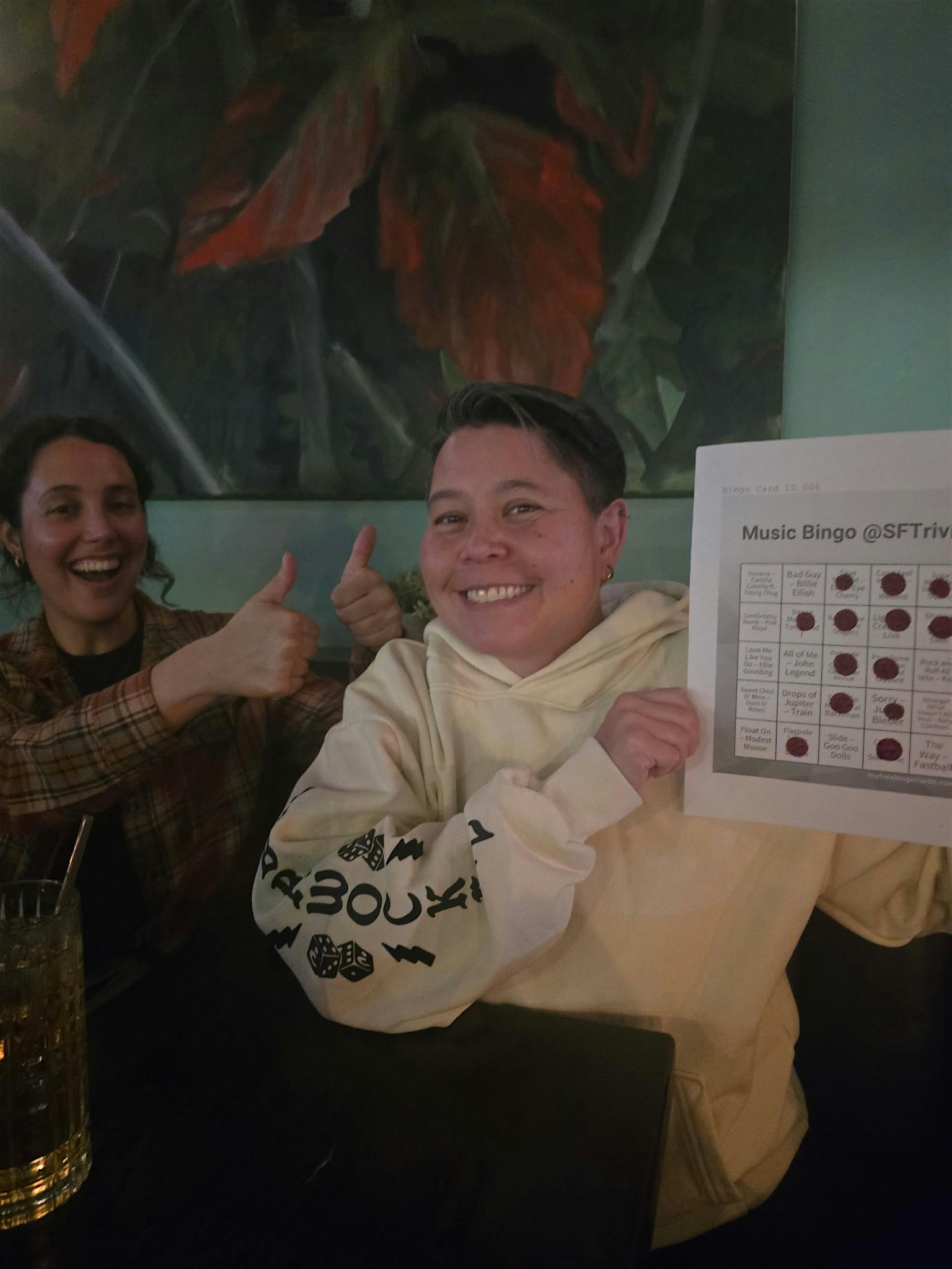 by admin27Feb Music Bingo at The Blue Light – San Francisco, CA Music Bingo at The Blue Light – San Francisco, CA 3 3 people viewed this event. Get ready to test your music knowledge and bingo skills at the ultimate Music Bingo showdown! Tickets-RSVP Link Date And Time Friday, April 10th, 2026 07:00 PM (PST) Venue The Blue Light Location 1979 Union Street, San Francisco, CA 94123 Event Types Music Event Category CaliforniaSan Francisco Share With Friends Facebook Twitter Linkedin Xing Pinterest Share This Post: