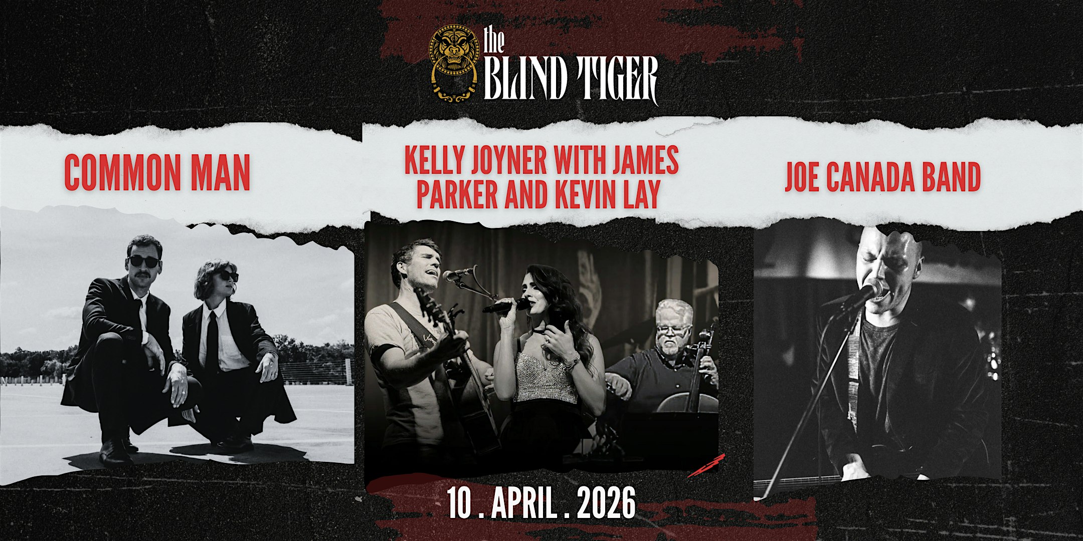 The Blind Tiger Presents Common Man, Kelly Joyner Trio, and Joe Canada Band at The Blind Tiger – Huntsville, AL The Blind Tiger Presents Common Man, Kelly Joyner Trio, and Joe Canada Band at The Blind Tiger – Huntsville, AL 1 1 people viewed this event. Reserve your tickets for an unparallelled night of music at the Blind Tiger with three unforgettable bands, one night only. Doors will open at 6pm, show to start at 7. This is a listening room-style event. 18+ Tickets-RSVP Link Register for event Date And Time Friday, April 10th, 2026 @ 07:00 PM Location 113 Clinton Avenue West, Huntsville, AL 35801 Event Types Concert or PerformanceMusic Event Category AlabamaHuntsville Share With Friends Facebook Twitter Linkedin Xing Pinterest