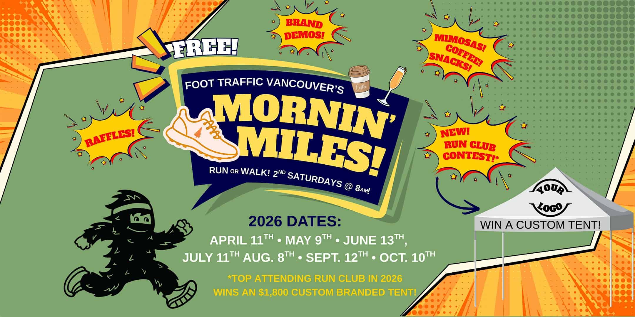 by admin23Feb 2026 Mornin’ Miles Monthly Run Parties at Foot Traffic Vancouver! at Foot Traffic Vancouver – Vancouver, WA 2026 Mornin’ Miles Monthly Run Parties at Foot Traffic Vancouver! at Foot Traffic Vancouver – Vancouver, WA 2 2 people viewed this event. Join us monthly- the 2nd Saturday of each month in 2026, April – Oct., at 8am at Foot Traffic Vancouver for a run, walk, and party! Tickets-RSVP Link Date And Time Saturday, April 11th, 2026 08:00 AM (PST) Venue Foot Traffic Vancouver Location 305 Southeast Chkalov Drive, Vancouver, WA 98683 Event Types Party or Social Gathering Event Category Washington Share With Friends Facebook Twitter Linkedin Xing Pinterest Share This Post: