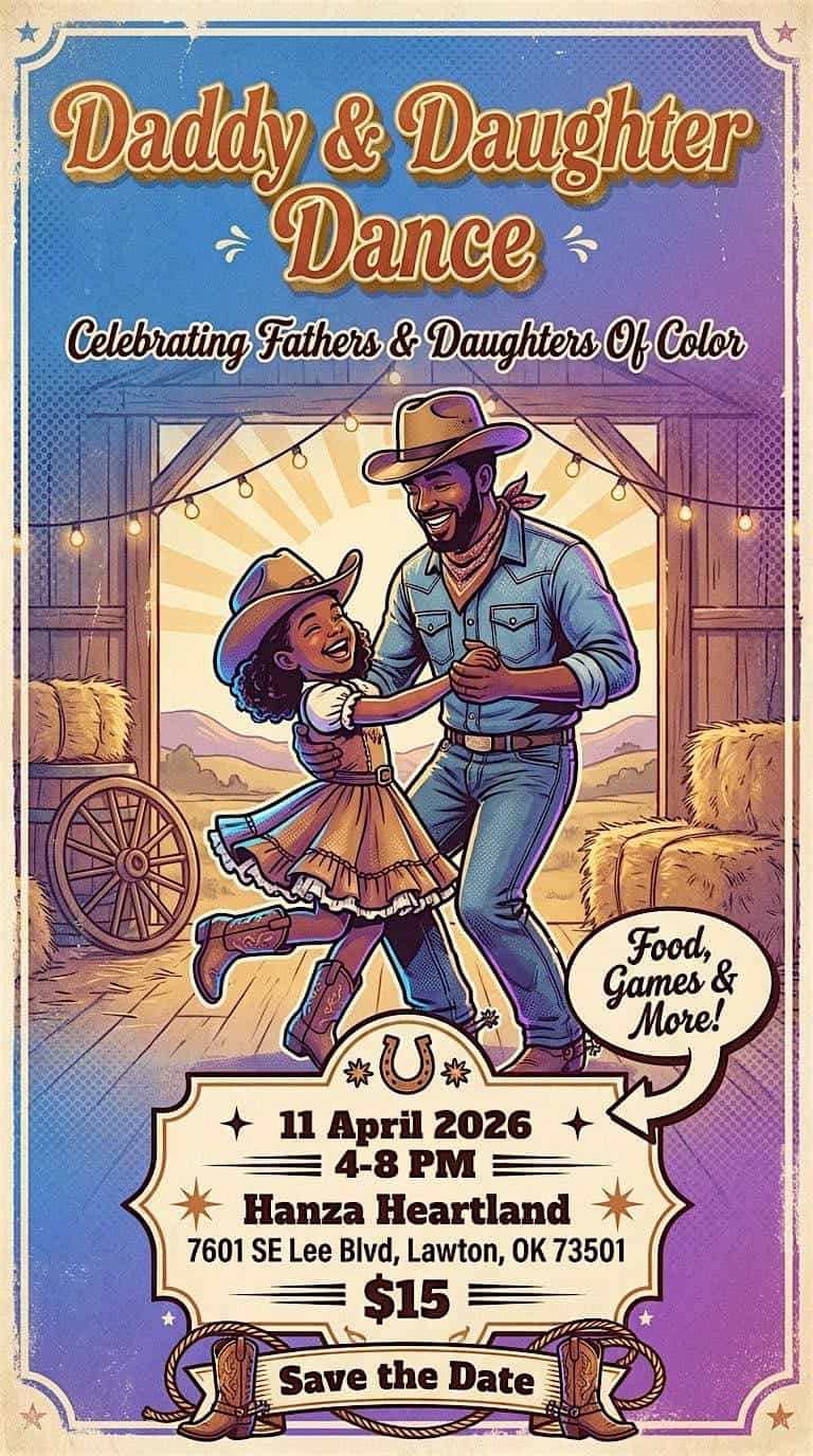 by admin23Feb 2nd Annual Minority Daddy/Daughter Dance at Hanza Heartland – Lawton, OK 2nd Annual Minority Daddy/Daughter Dance at Hanza Heartland – Lawton, OK 3 3 people viewed this event. Celebrating fathers of color while uplifting daughters of color. Dancing/dinner/games Tickets-RSVP Link Date And Time Saturday, April 11th, 2026 04:00 PM (PST) Venue Hanza Heartland Location 7601 Southeast Lee Boulevard, Lawton, OK 73501 Event Types Community & CultureParty or Social Gathering Event Category Oklahoma Share With Friends Facebook Twitter Linkedin Xing Pinterest Share This Post: