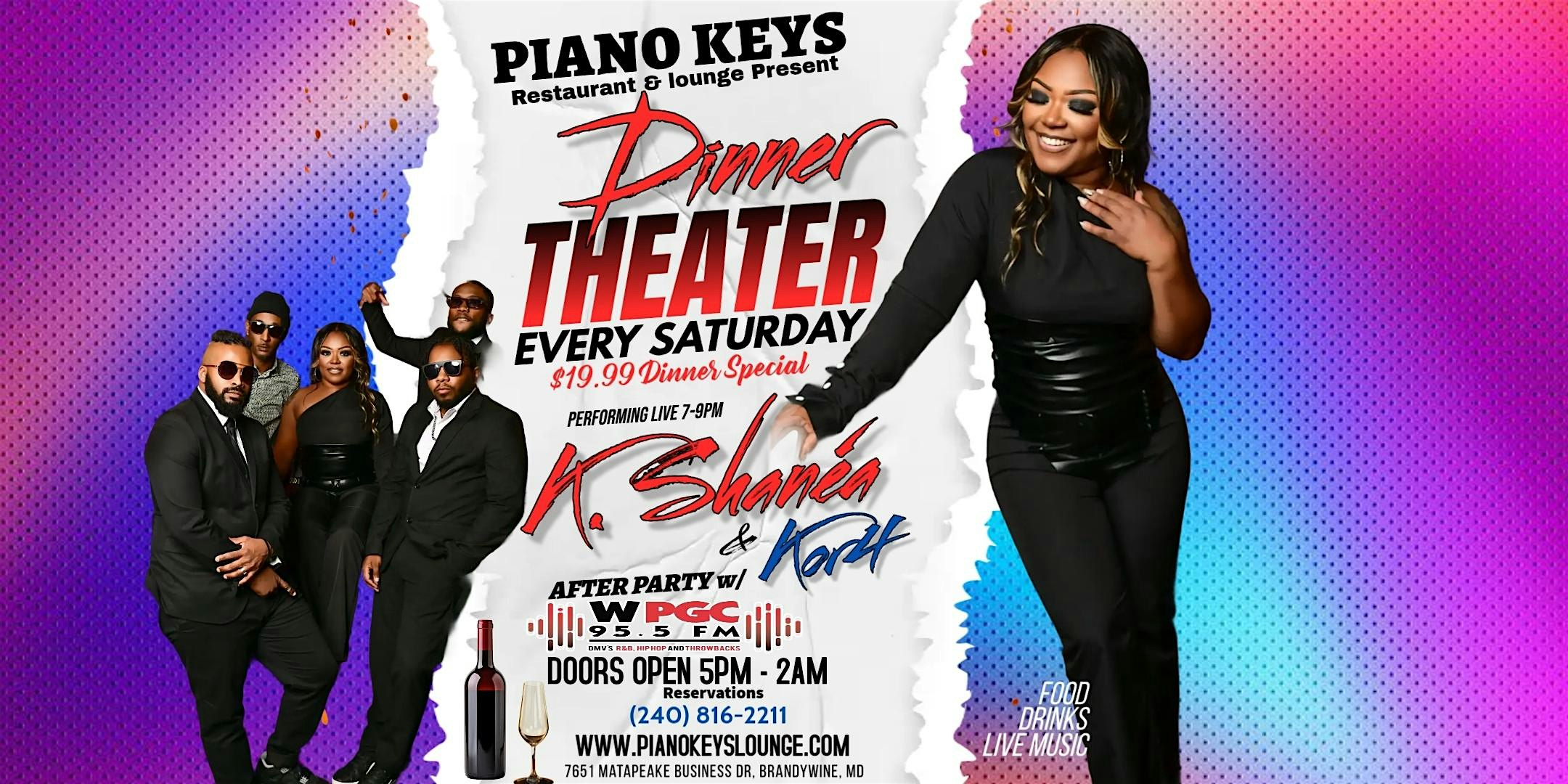 Dinner Theater Ft. K. Shanéa & Kor4 @ Piano Keys Lounge. Every Sat 5-9 at Piano Keys Restaurant and Lounge – Brandywine, MD Dinner Theater Ft. K. Shanéa & Kor4 @ Piano Keys Lounge. Every Sat 5-9 at Piano Keys Restaurant and Lounge – Brandywine, MD 3 3 people viewed this event. Every Saturday 5-9pm Piano Keys Presents Dinner Theater w/ K. Shanéa & For 4 band@ Piano Keys Lounge (Featuring Pam Ward & Coty The Artist) Tickets-RSVP Link Register for event Date And Time Saturday, April 11th, 2026 @ 05:00 PM Location 7651 Matapeake Business Drive, Brandywine, MD 20613 Event Types Concert or PerformanceFood & Drink Event Category MarylandNational Harbor Share With Friends Facebook Twitter Linkedin Xing Pinterest