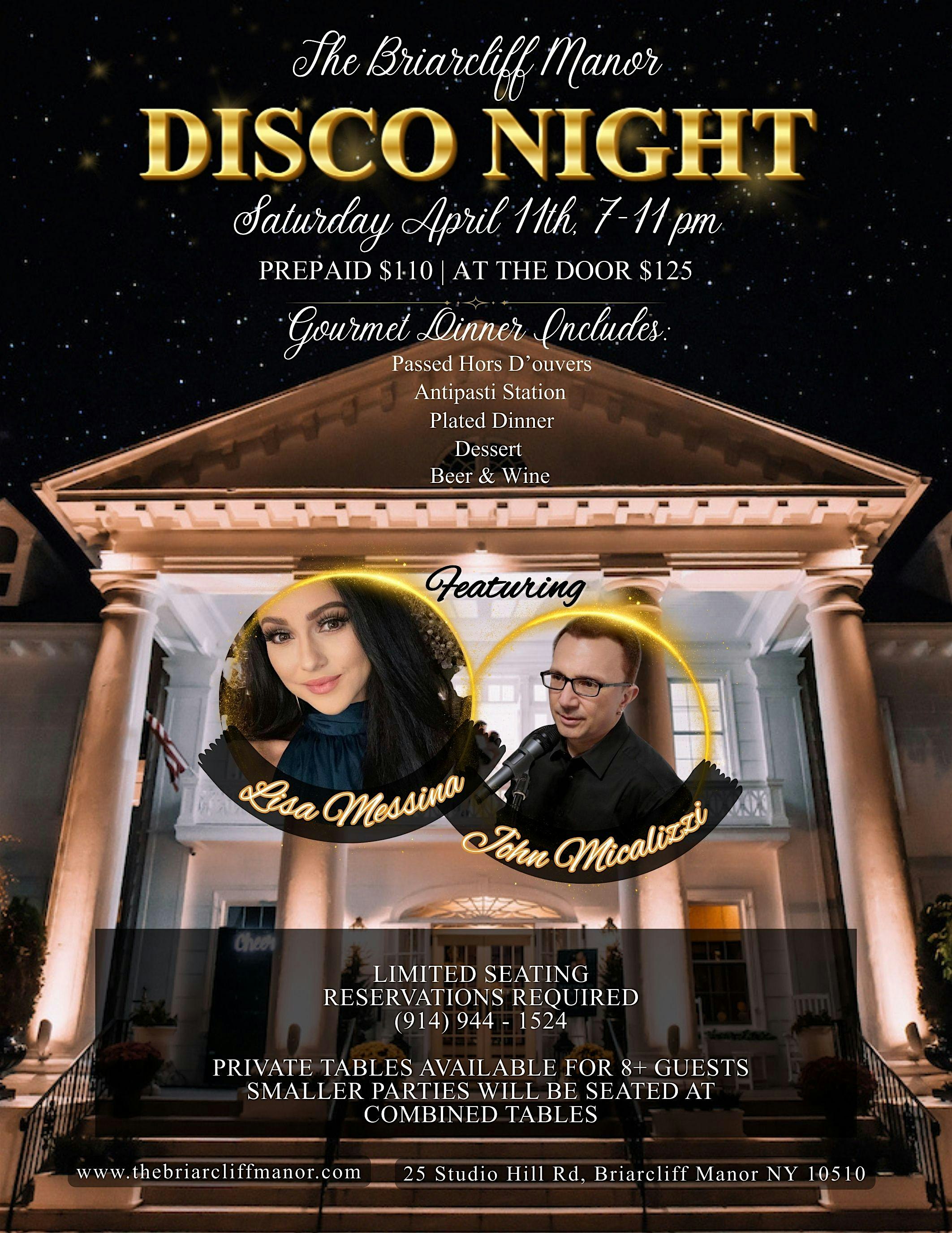 by admin24Feb Disco Night with An Italian Twist Featuring Lisa Messina and John Micalizzi at The Briarcliff Manor – Briarcliff Manor, NY Disco Night with An Italian Twist Featuring Lisa Messina and John Micalizzi at The Briarcliff Manor – Briarcliff Manor, NY 2 2 people viewed this event. Enjoy a cocktail hour, a plated dinner experience, beer + wine, music of all genres and dancing! Tickets-RSVP Link Date And Time Saturday, April 11th, 2026 07:00 PM (PST) Venue The Briarcliff Manor Location 25 Studio Hill Rd., Briarcliff Manor, NY 10510 Event Types Food & Drink Event Category New York Share With Friends Facebook Twitter Linkedin Xing Pinterest Share This Post: