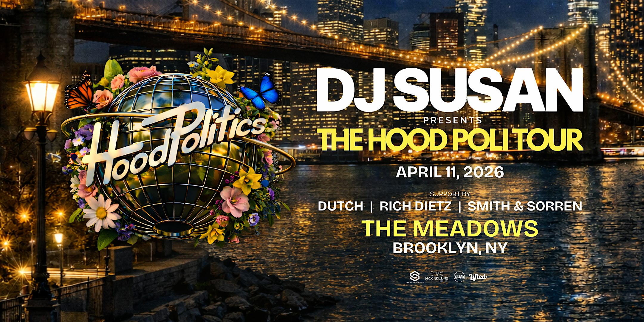 by admin27Feb DJ Susan Presents The Hood Poli Tour – Brooklyn at The Meadows – Brooklyn, NY DJ Susan Presents The Hood Poli Tour – Brooklyn at The Meadows – Brooklyn, NY 2 2 people viewed this event. DJ Susan and Hood Politics Records take over The Meadows in Brooklyn on April 11th! Tickets-RSVP Link Date And Time Saturday, April 11th, 2026 @ 11:00 PM Location 17 Meadow Street, Brooklyn, NY 11206 Event Types MusicOther Event Category New York Share With Friends Facebook Twitter Linkedin Xing Pinterest Share This Post: