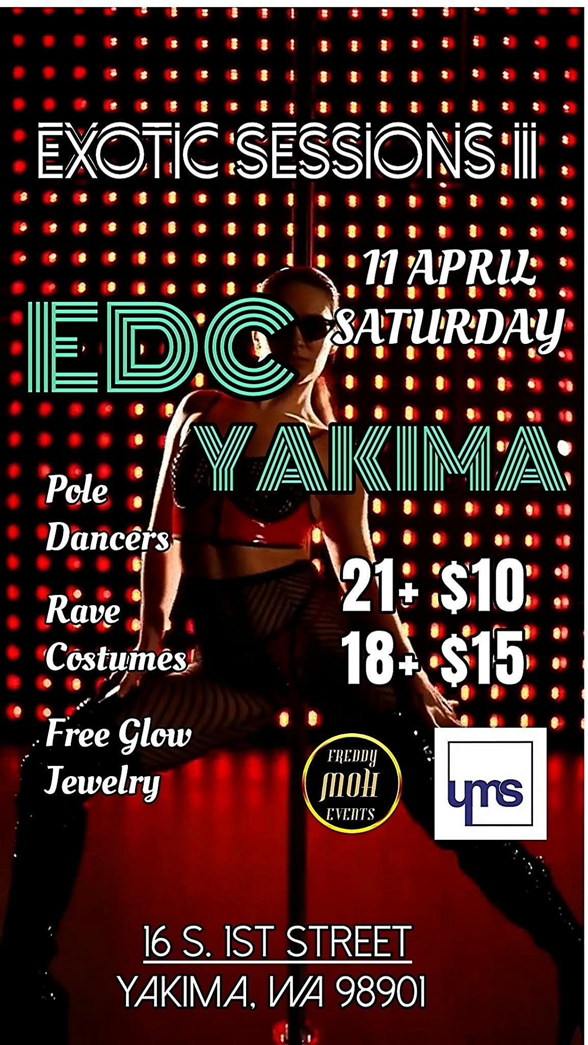 by admin24Feb Exotic Sessions 3: EDC Yakima at Yakima Maker Space – Yakima, WA Exotic Sessions 3: EDC Yakima at Yakima Maker Space – Yakima, WA 2 2 people viewed this event. We are bringing Las Vegas vibes to Yakima with Exotic Sessions 3: EDC YAKIMA! Be ready for rave costumes and electric performances! Tickets-RSVP Link Date And Time Saturday, April 11th, 2026 08:00 PM (PST) Venue Yakima Maker Space Location 16 South 1st Street, Yakima, WA 98901 Event Types Concert or PerformanceMusic Event Category Washington Share With Friends Facebook Twitter Linkedin Xing Pinterest Share This Post: