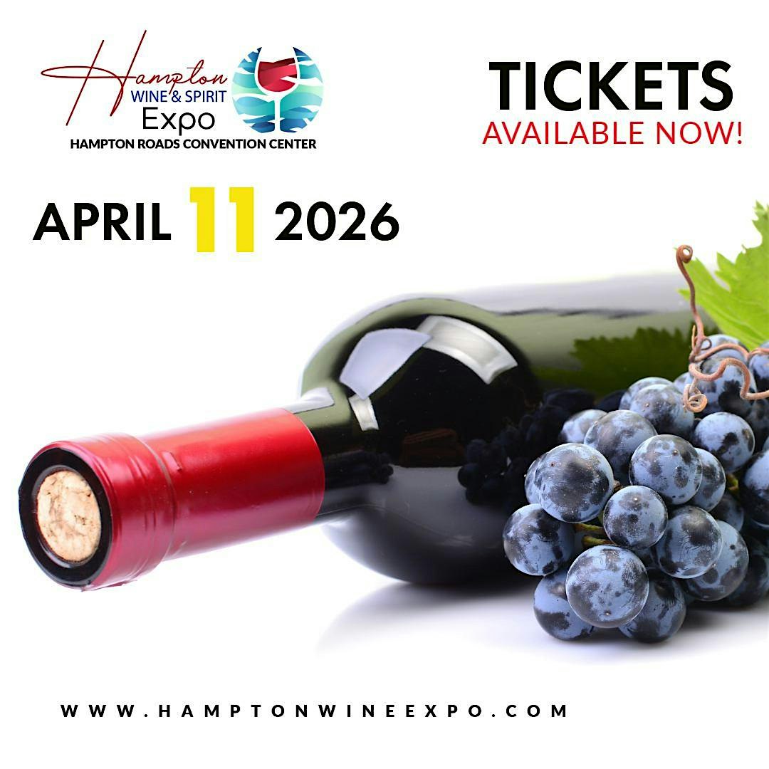by admin27Feb Hampton Wine & Spirit Expo at Hampton Roads Convention Center – Hampton, VA Hampton Wine & Spirit Expo at Hampton Roads Convention Center – Hampton, VA 1 1 people viewed this event. Sip, savor, dance and socialize at the Hampton Wine & Spirit Expo – your ultimate drink fest! 60+ Vendors, Over 25 wine, spirit & meadery’s! Tickets-RSVP Link Date And Time Saturday, April 11th, 2026 12:00 PM (PST) Venue Hampton Roads Convention Center Location 1610 Coliseum Drive, Hampton, VA 23666 Event Types Food & Drink Event Category Virginia Share With Friends Facebook Twitter Linkedin Xing Pinterest Share This Post: