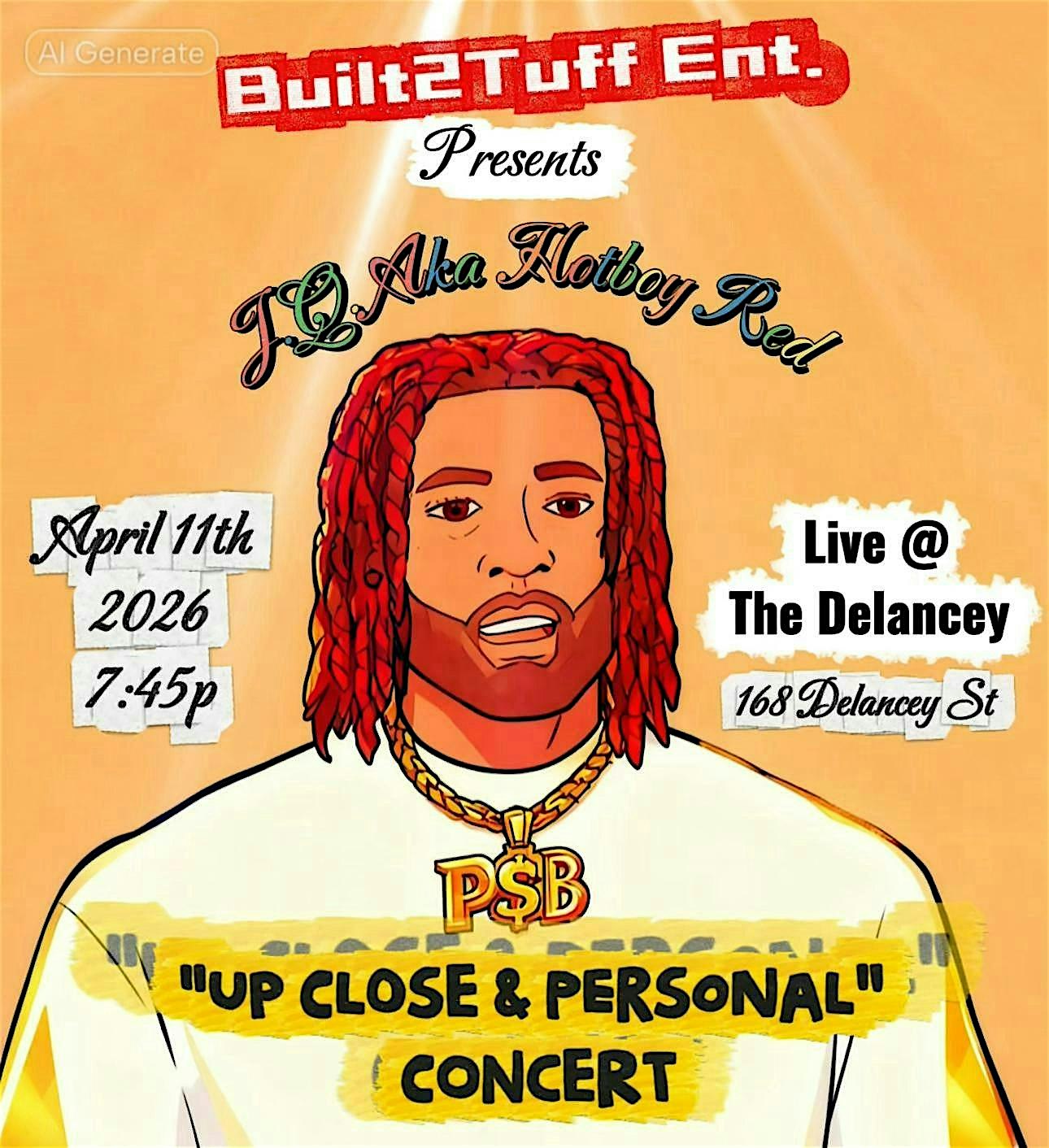 by admin13Feb J.Q. Aka Hotboy Red:Up Close and Personal Tour at 168 Delancey St – New York, NY J.Q. Aka Hotboy Red:Up Close and Personal Tour at 168 Delancey St – New York, NY 1 1 people viewed this event. Get ready to vibe up close with J.Q. Aka Hotboy Red on his intimate Up Close and Personal Tour! Tickets-RSVP Link Date And Time Saturday, April 11th, 2026 11:00 PM (PST) Venue 168 Delancey St Location 168 Delancey Street, New York, NY 10002 Event Types Music Event Category New YorkNew York City Share With Friends Facebook Twitter Linkedin Xing Pinterest Share This Post: