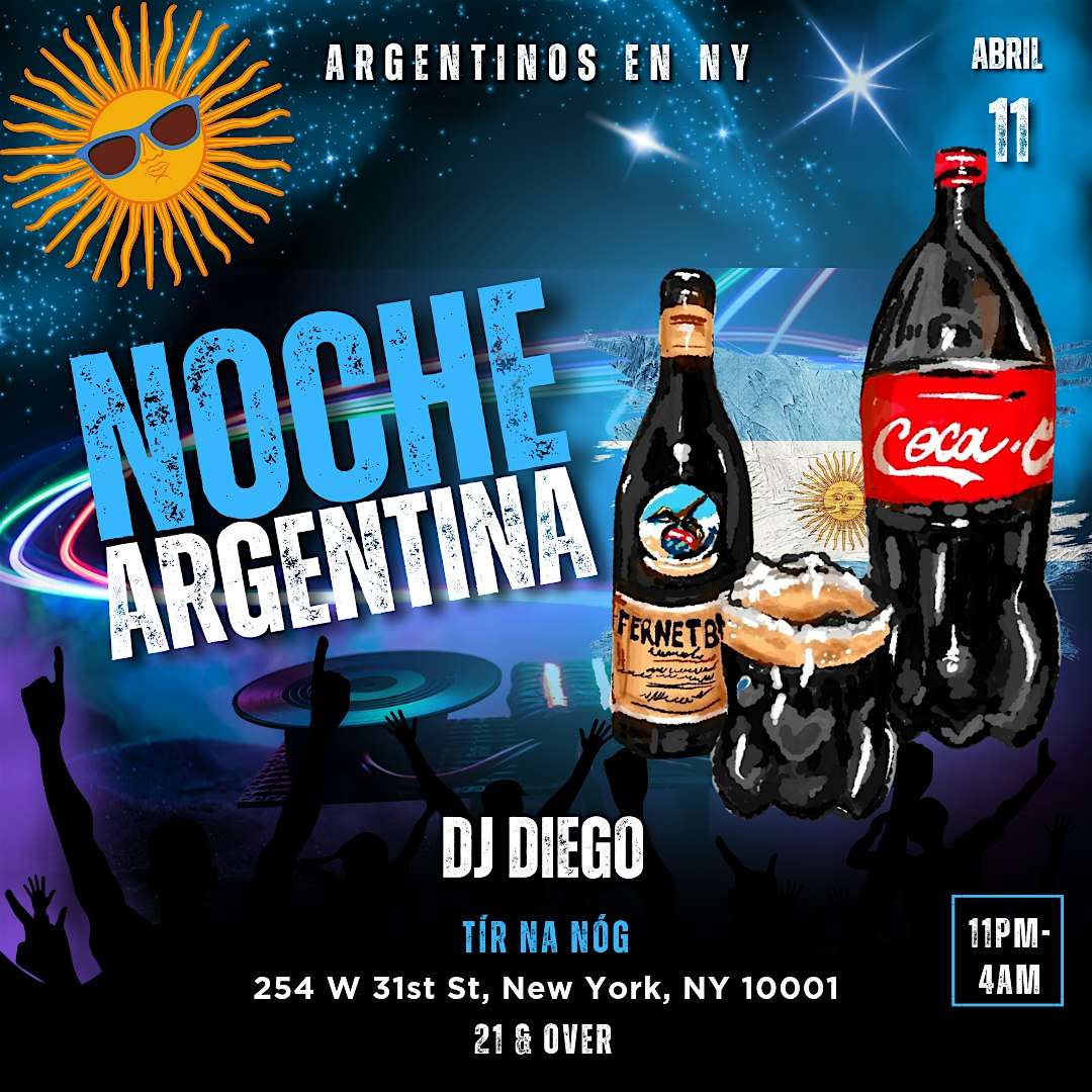 by admin27Feb NOCHE ARGENTINA NYC ABRIL 2026 at Tír na Nóg – New York, NY NOCHE ARGENTINA NYC ABRIL 2026 at Tír na Nóg – New York, NY 1 1 people viewed this event. Se viene el fiestón! 11 de abril en Tir Na Nog con Dj Diego. No refunds Tickets-RSVP Link Date And Time Saturday, April 11th, 2026 11:00 PM (PST) Venue Tír na Nóg Location 254 West 31st Street, New York, NY 10001 Event Types MusicParty or Social Gathering Event Category New YorkNew York City Share With Friends Facebook Twitter Linkedin Xing Pinterest Share This Post: