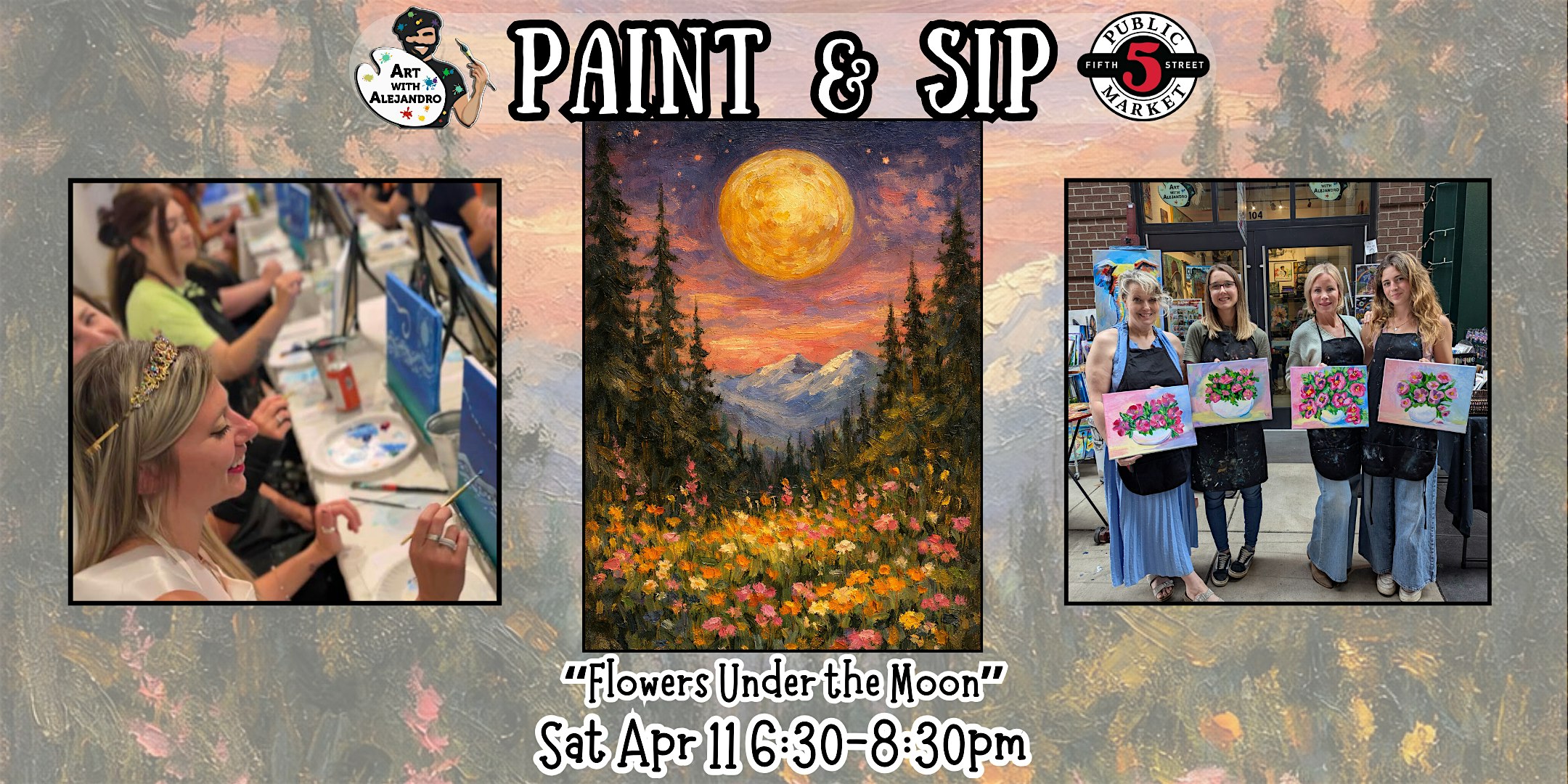 Paint & Sip at 5th St Alley “Flowers Under the Moon” at Art with Alejandro – Eugene, OR