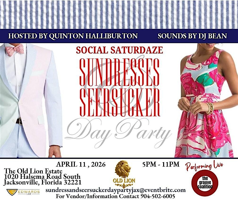 by admin13Feb Social Saturdaze Sundresses & Seersucker Day Party at 1020 Halsema Rd S – Jacksonville, FL Social Saturdaze Sundresses & Seersucker Day Party at 1020 Halsema Rd S – Jacksonville, FL 1 1 people viewed this event. Social Saturdaze Sundresses & Seersucker Day Party Tickets-RSVP Link Date And Time Saturday, April 11th, 2026 09:00 PM (PST) Venue 1020 Halsema Rd S Location 1020 Halsema Road South, Jacksonville, FL 32221 Event Types Fashion & BeautyParty or Social Gathering Event Category FloridaJacksonville Share With Friends Facebook Twitter Linkedin Xing Pinterest Share This Post: