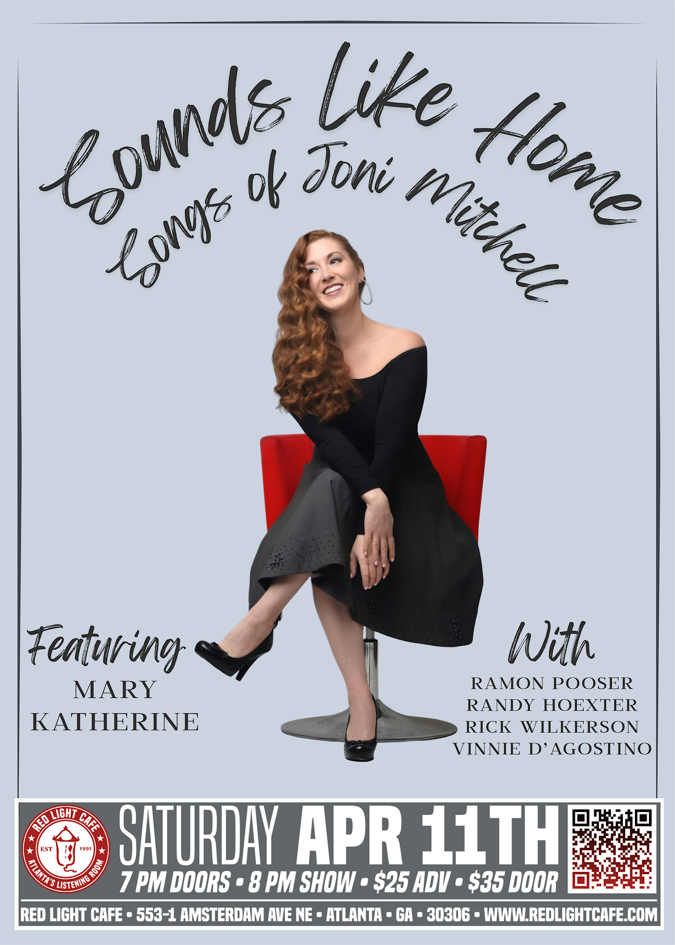 by admin24Feb Sounds Like Home: Songs of Joni Mitchell at Red Light Cafe – Atlanta, GA Sounds Like Home: Songs of Joni Mitchell at Red Light Cafe – Atlanta, GA 1 1 people viewed this event. A tribute to Joni Mitchell: the intimate songwriting of Clouds, through her jazz period, to the modern sophistication of Taming the Tiger. Tickets-RSVP Link Date And Time Saturday, April 11th, 2026 08:00 PM (PST) Venue Red Light Cafe Location 553 Amsterdam Avenue Northeast, Atlanta, GA 30306 Event Types Concert or PerformanceMusic Event Category AtlantaGeorgia Share With Friends Facebook Twitter Linkedin Xing Pinterest Share This Post: