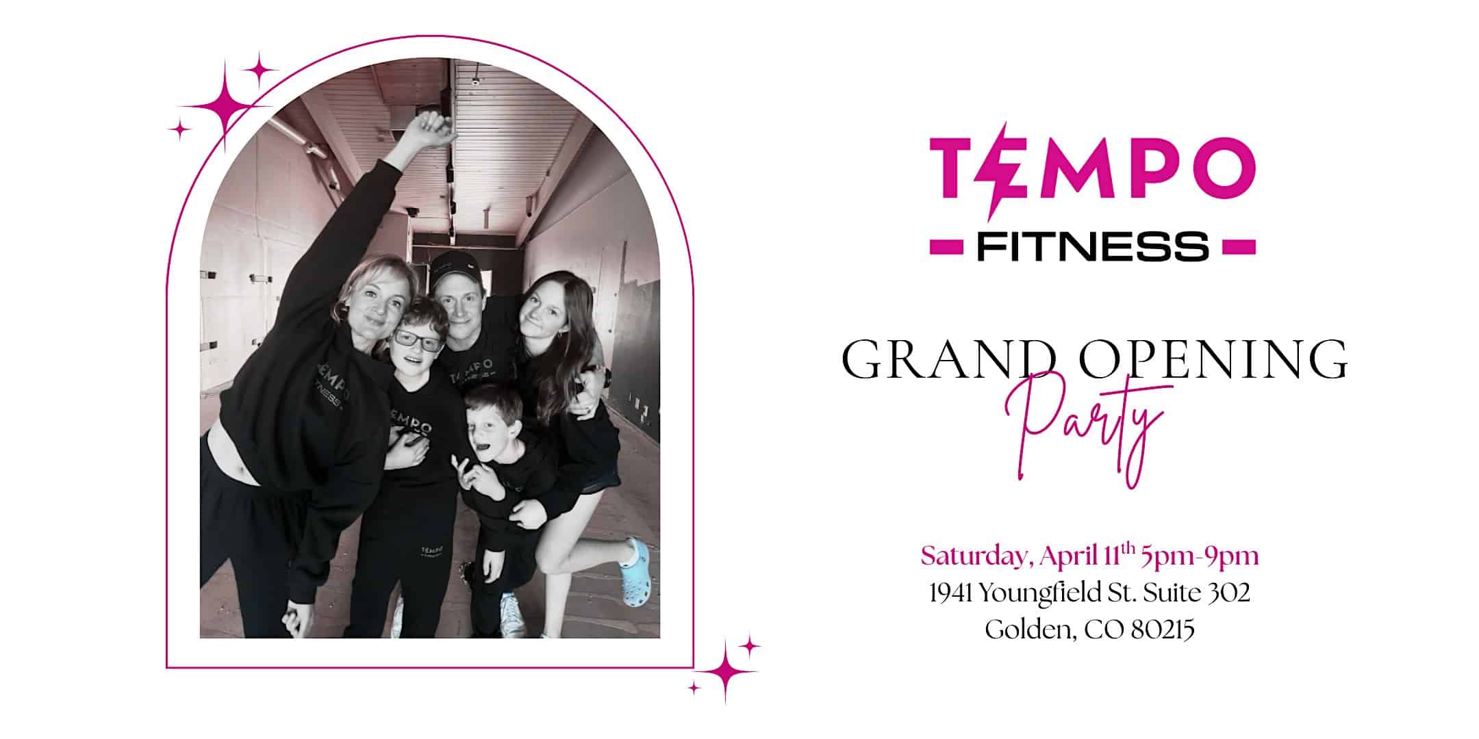 by admin14Feb Tempo Fitness Grand Opening Party at 1941 Youngfield St suite 302 – Golden, CO Tempo Fitness Grand Opening Party at 1941 Youngfield St suite 302 – Golden, CO 4 4 people viewed this event. Join us for the Tempo Fitness Grand Opening Party in Golden, CO! Tour the new studio, meet our instructors, and enjoy the great vibes! Tickets-RSVP Link Date And Time Saturday, April 11th, 2026 11:00 PM (PST) Venue 1941 Youngfield St suite 302 Location 1941 Youngfield Street, Golden, CO 80401 Event Types Party or Social GatheringSports & Fitness Event Category ColoradoDenver Share With Friends Facebook Twitter Linkedin Xing Pinterest Share This Post: