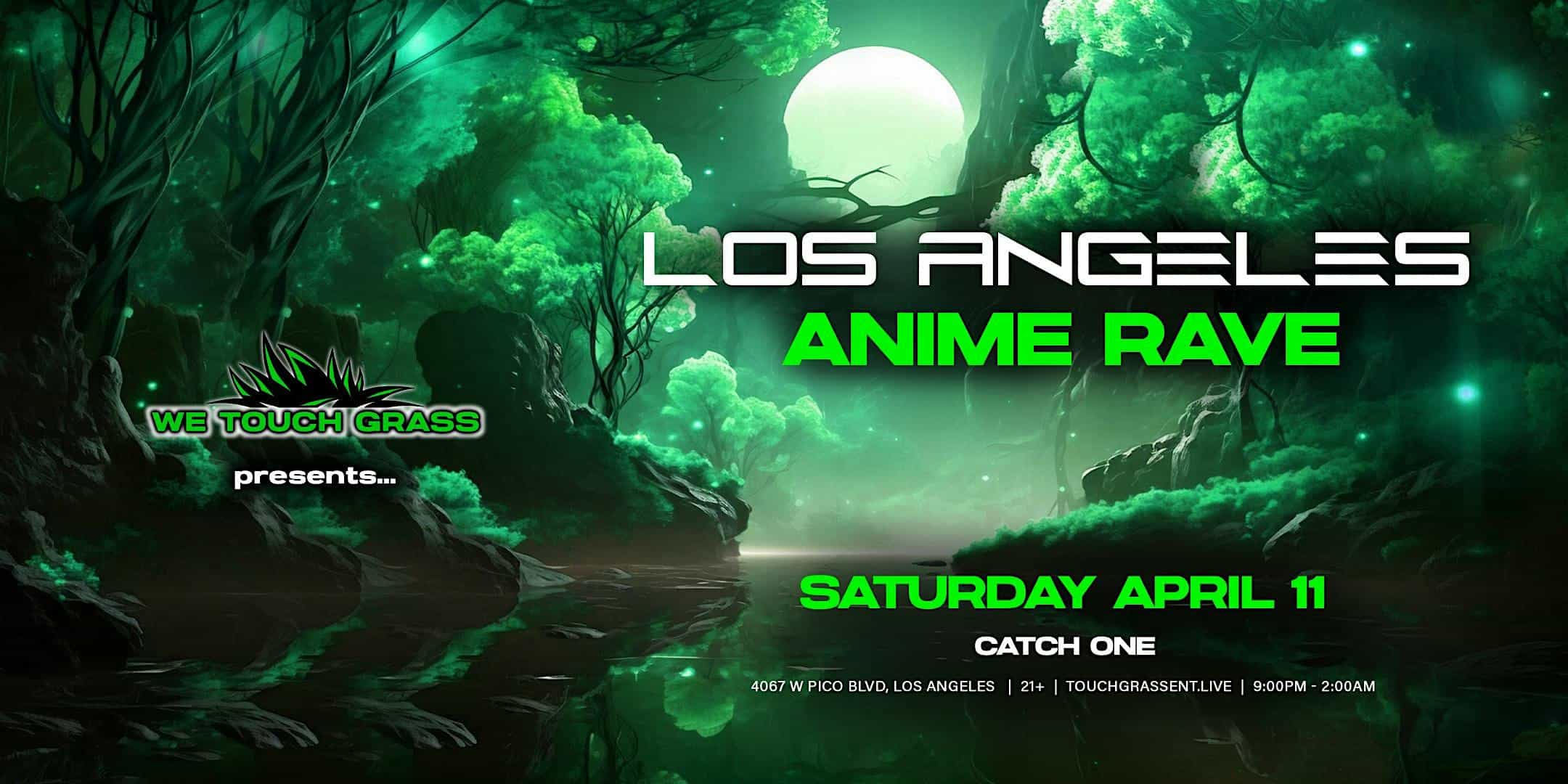 by admin23Feb We Touch Grass presents: Los Angeles Anime Rave at Catch One – Los Angeles, CA We Touch Grass presents: Los Angeles Anime Rave at Catch One – Los Angeles, CA 2 2 people viewed this event. Get ready to level up your anime rave experience – the #WeTouchGrass Anime Rave is coming back to LOS ANGELES, Saturday, April 11! Tickets-RSVP Link Date And Time Saturday, April 11th, 2026 09:00 PM (PST) Venue Catch One Location 4067 West Pico Boulevard, Los Angeles, CA 90019 Event Types MusicParty or Social Gathering Event Category CaliforniaLos Angeles Share With Friends Facebook Twitter Linkedin Xing Pinterest Share This Post: