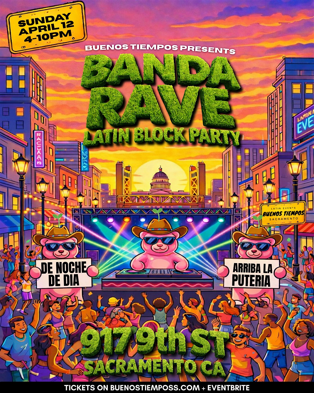 BANDA RAVE LATIN BLOCK PARTY at 917 9th St – Sacramento, CA BANDA RAVE LATIN BLOCK PARTY at 917 9th St – Sacramento, CA 2 2 people viewed this event. Get ready to dance all day with the hottest Banda beats and the wildest rave vibes around! Tickets-RSVP Link Register for event Date And Time Sunday, April 12th, 2026 @ 04:00 PM Location 917 9th Street, Sacramento, CA 95814 Event Types MusicParty or Social Gathering Event Category CaliforniaSacramento Share With Friends Facebook Twitter Linkedin Xing Pinterest