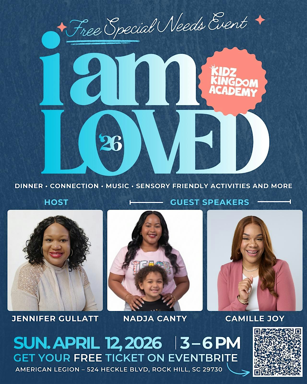 by admin13Feb Copy of “I AM LOVED 2026” at American Legion Post 34 – Rock Hill, SC Copy of “I AM LOVED 2026” at American Legion Post 34 – Rock Hill, SC 3 3 people viewed this event. An unforgettable afternoon of encouragement, music, food & fun—celebrating every child & caregiver in a sensory‑friendly space! Tickets-RSVP Link Date And Time Sunday, April 12th, 2026 07:00 PM (PST) Venue American Legion Post 34 Location 524 Heckle Boulevard, Rock Hill, SC 29730 Event Types Community & CultureParty or Social Gathering Event Category South Carolina Share With Friends Facebook Twitter Linkedin Xing Pinterest Share This Post: