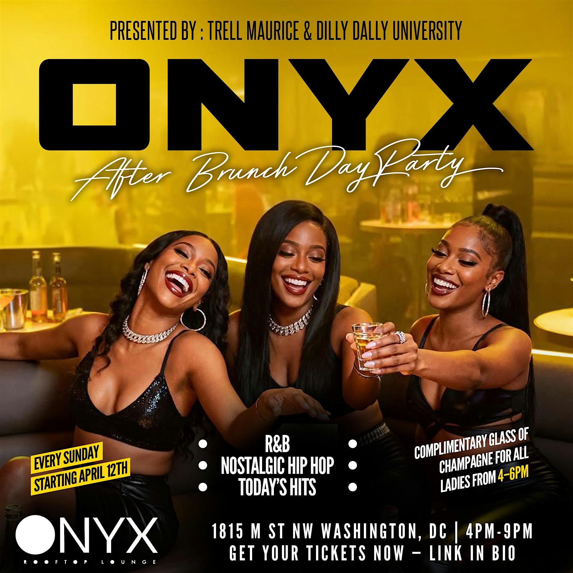 by admin27Feb Onyx Sundays | After Brunch Day Party at ONYX Rooftop Lounge – Washington, DC Onyx Sundays | After Brunch Day Party at ONYX Rooftop Lounge – Washington, DC 2 2 people viewed this event. The best rooftop in the city meets the ultimate grown folks vibe. R&B ✔️ Nostalgic Hip Hop ✔️ Today’s hits ✔️ Tickets-RSVP Link Date And Time Sunday, April 12th, 2026 @ 04:00 PM Location 1815 M Street Northwest, Washington, DC 20036 Event Types MusicParty or Social Gathering Event Category Washington DC Share With Friends Facebook Twitter Linkedin Xing Pinterest Share This Post:
