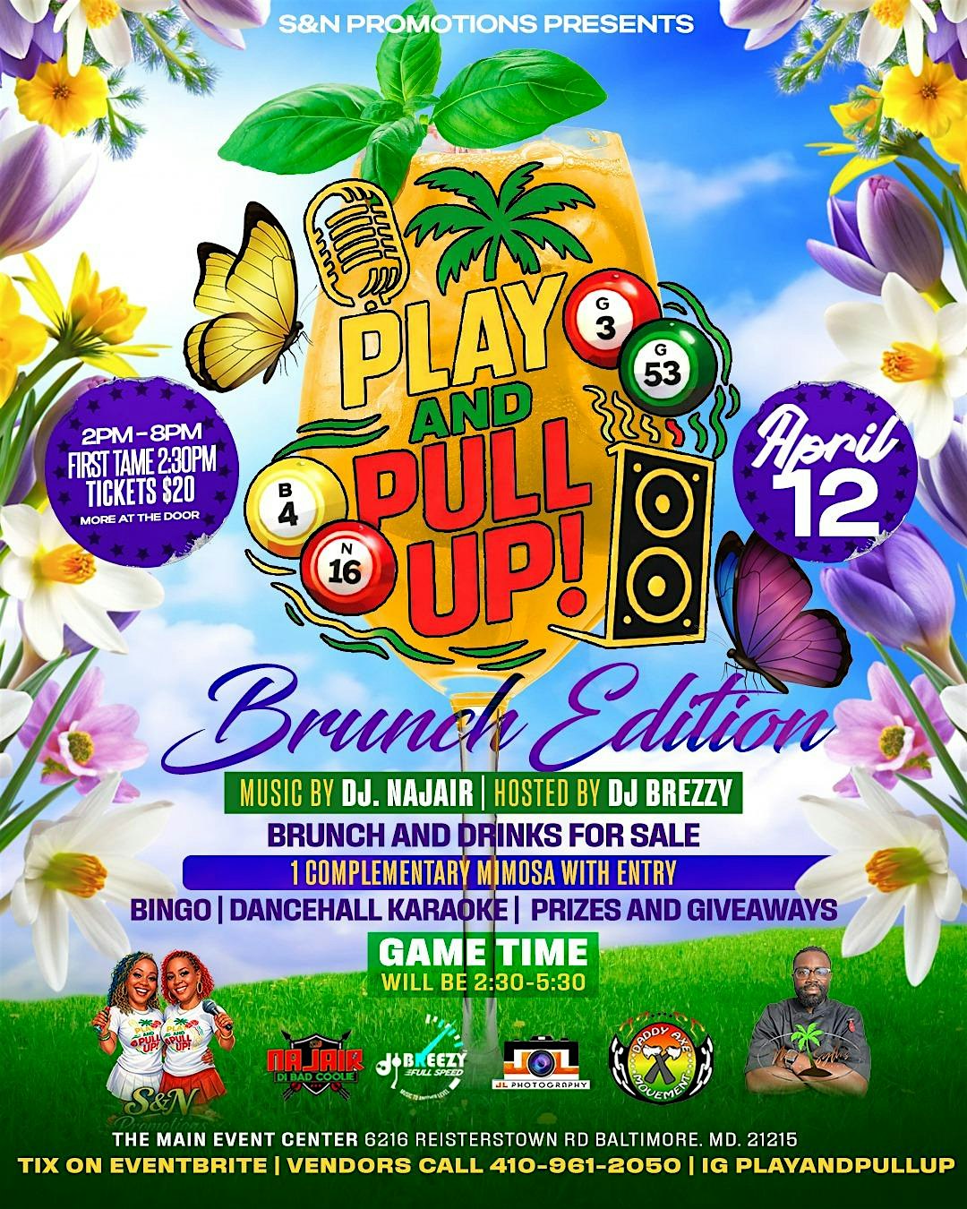 Play & Pullup Bingo Dancehall Karaoke at The Main Events Center 2 – Baltimore, MD Play & Pullup Bingo Dancehall Karaoke at The Main Events Center 2 – Baltimore, MD 2 2 people viewed this event. Get ready to mix dancehall vibes, karaoke fun, and some pullup challenges all in one wild bingo night! Tickets-RSVP Link Register for event Date And Time Sunday, April 12th, 2026 @ 02:00 PM Location 6216 Reisterstown Road, Baltimore, MD 21215 Event Types MusicParty or Social Gathering Event Category BaltimoreMaryland Share With Friends Facebook Twitter Linkedin Xing Pinterest