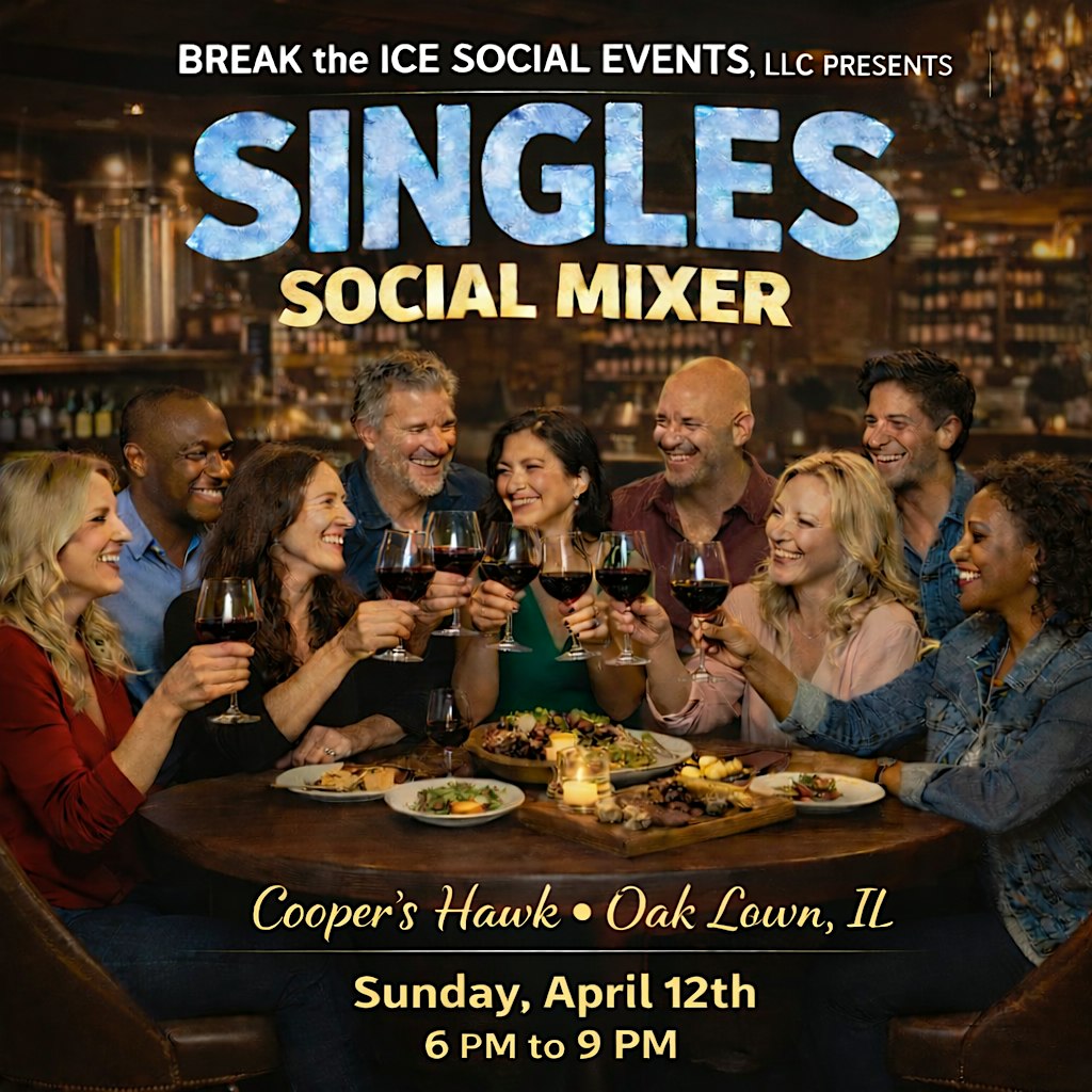 by admin23Feb Singles Social Mixer Oak Lawn, IL Cooper’s Hawk at Cooper’s Hawk Winery & Restaurant – Oak Lawn, IL Singles Social Mixer Oak Lawn, IL Cooper’s Hawk at Cooper’s Hawk Winery & Restaurant – Oak Lawn, IL 2 2 people viewed this event. Join us for a singles social mixer. These mixers are an excellent opportunity to meet new people for a fun night out. Tickets-RSVP Link Date And Time Sunday, April 12th, 2026 06:00 PM (PST) Venue Cooper’s Hawk Winery & Restaurant Location 4830 West 111th Street, Oak Lawn, IL 60453 Event Types Food & DrinkParty or Social Gathering Event Category Illinois Share With Friends Facebook Twitter Linkedin Xing Pinterest Share This Post:
