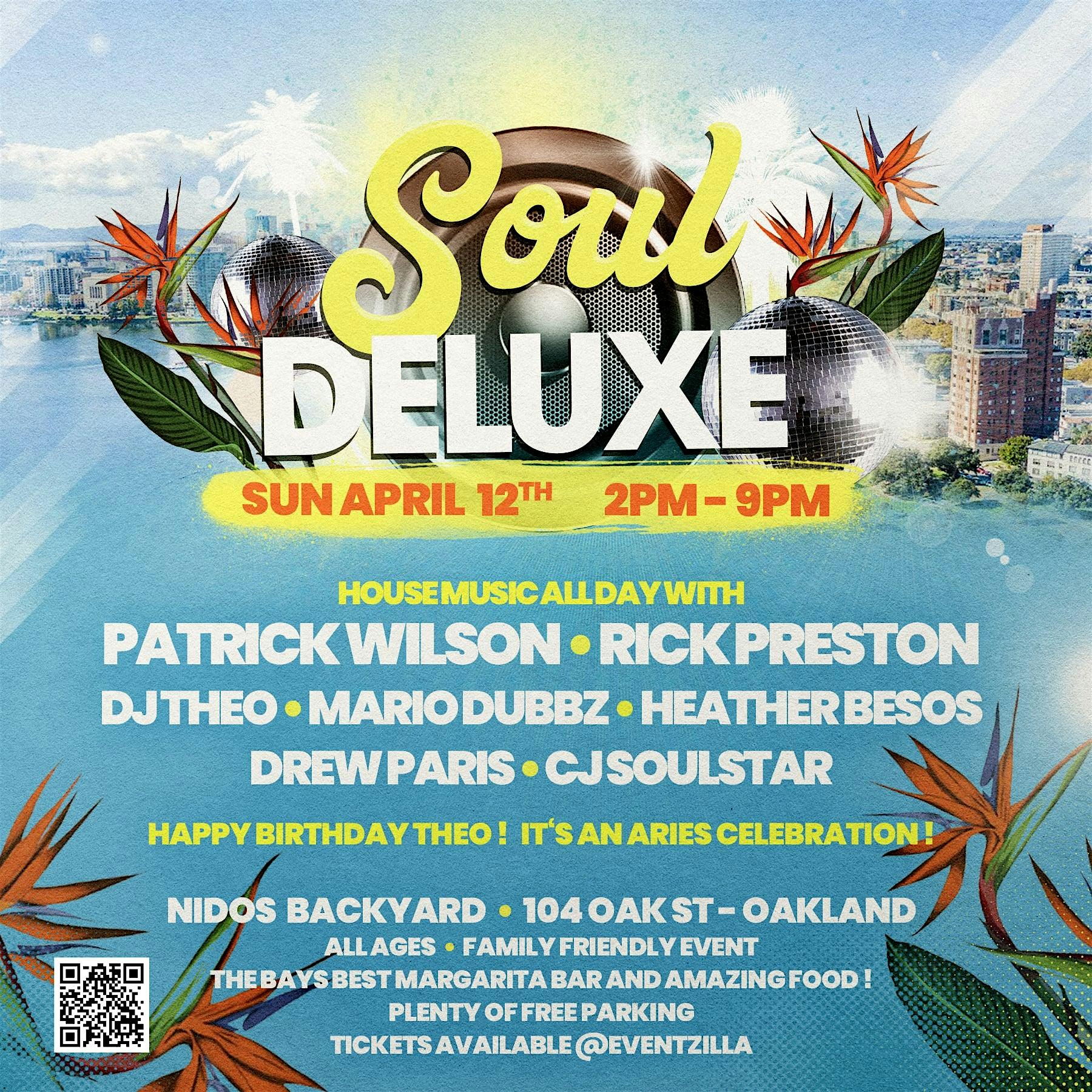 by admin24Feb Soul Deluxe 2026 at 104 Oak St – Oakland, CA Soul Deluxe 2026 at 104 Oak St – Oakland, CA 1 1 people viewed this event. Hi Everybody! Mario Dubbz and DJ Theo are excited to bring Soul Deluxe 2026 to a Fresh New Location in Oakland. It will be our signature Tickets-RSVP Link Date And Time Sunday, April 12th, 2026 02:00 PM (PST) Venue 104 Oak St Location 104 Oak Street, Oakland, CA 94607 Event Types Concert or PerformanceMusic Event Category CaliforniaOakland Share With Friends Facebook Twitter Linkedin Xing Pinterest Share This Post: